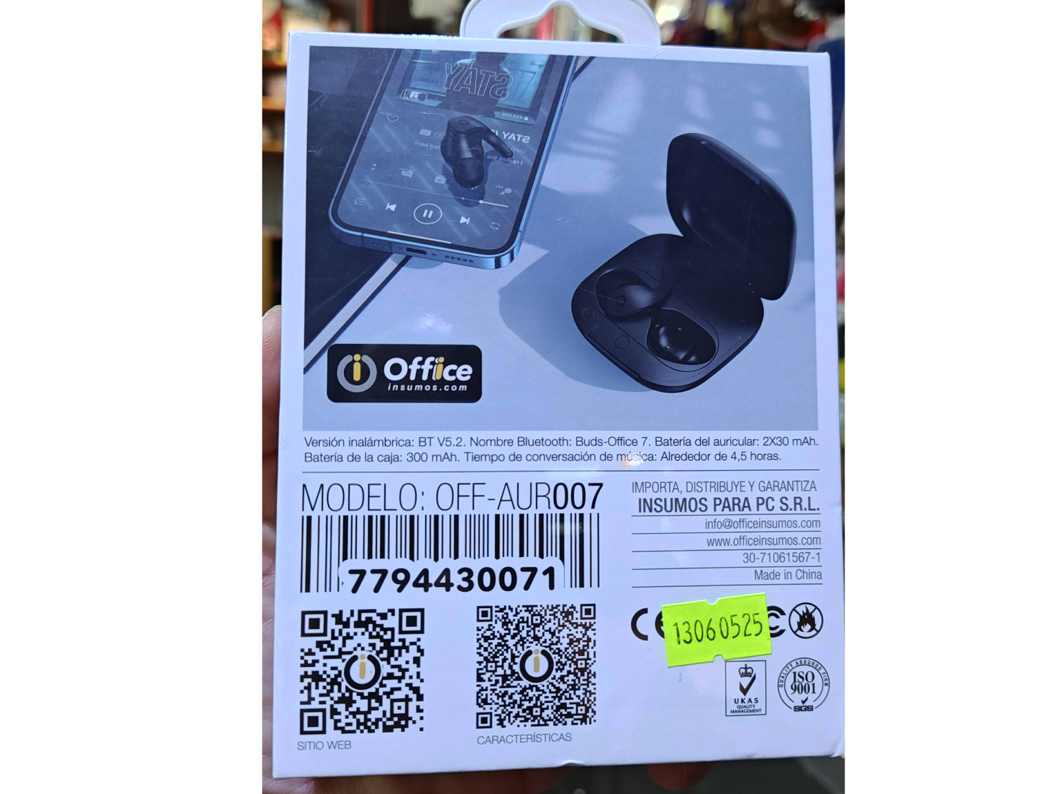 Auricular BT office Aur007 Compartir por WhatsApp Copiar enlace Última unidad Versión Inalámbrica BT v5.2 Batería 2*30mah Batería caja 300mah Tiempo de conversación alrededor 4.5hs$31.320$26.622 15% OFF Observaciones 0 / 150 Encontrá productos relacionados BLUETOOTH (43) AURICULARES (49)