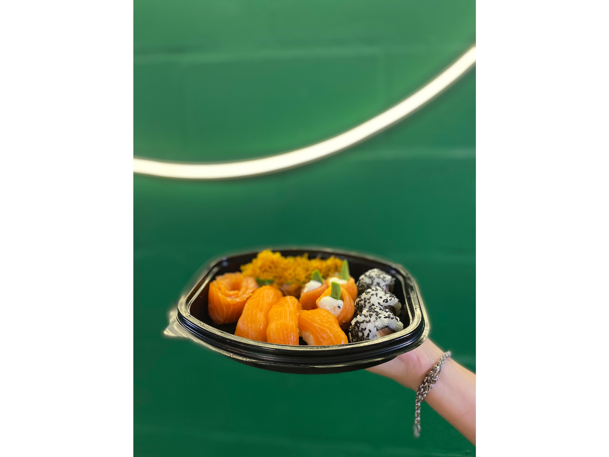 Combinado de: Placer Real, Niguiris, Geishas, Philadelphia y Sashimi. Incluye dos salsas y dos pares de palitos.