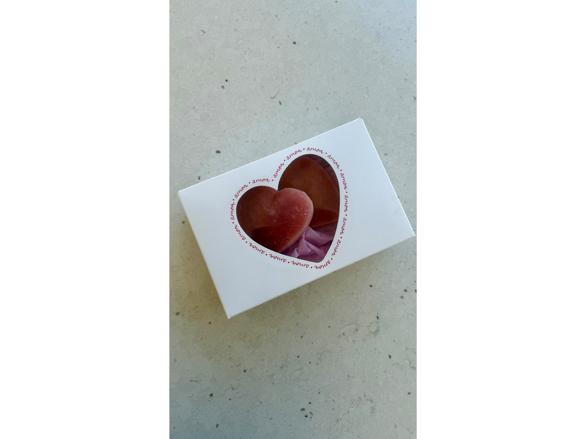 Dos paletas heladas en forma de corazón, frescas, frutales y súper románticas. Perfectas para compartir (o para que cada uno tenga la suya 😉). Presentadas en una delicada cajita con visor en forma de corazón y papel rosa, listas para regalar y enamorar desde el primer vistazo 💌✨