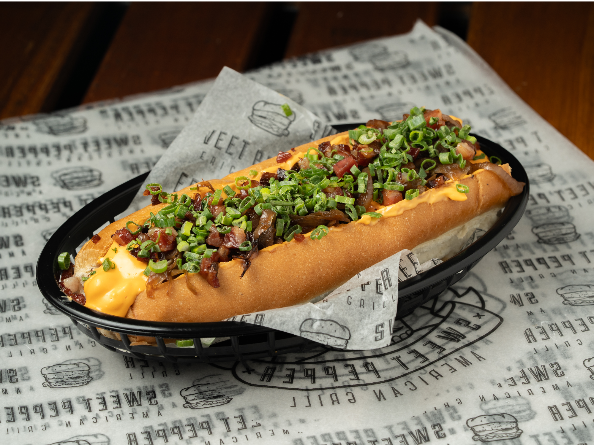 HOT DOG SWEET PEPPER Compartir por WhatsApp Copiar enlace Salchicha alemana con panceta, cheddar, verdeo y cebolla caramelizada + papas fritas$16.200 Observaciones 0 / 150