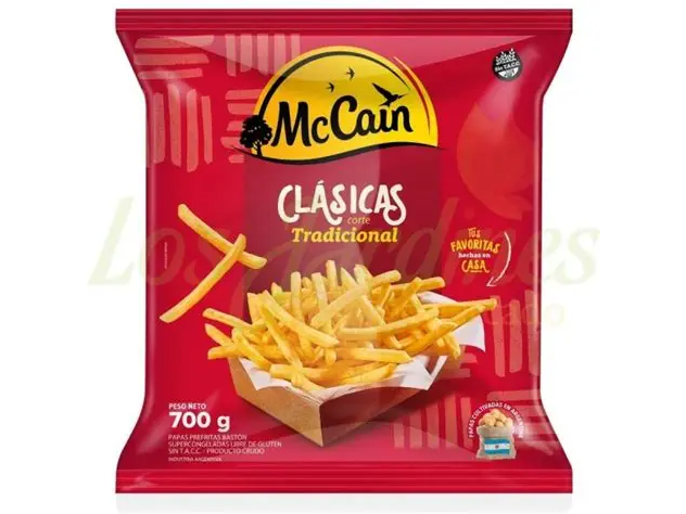 Papas fritas Mccain Compartir por WhatsApp Copiar enlace papas mccain varias Presentaciones Seleccioná las opciones que quieras.horneables x 600 grs$6.811,89noisette horneables x 600 grs$6.425,99tradicional x 700 grs$5.538,55tradicional x 1.400 kg$10.672,59 Observaciones 0 / 150