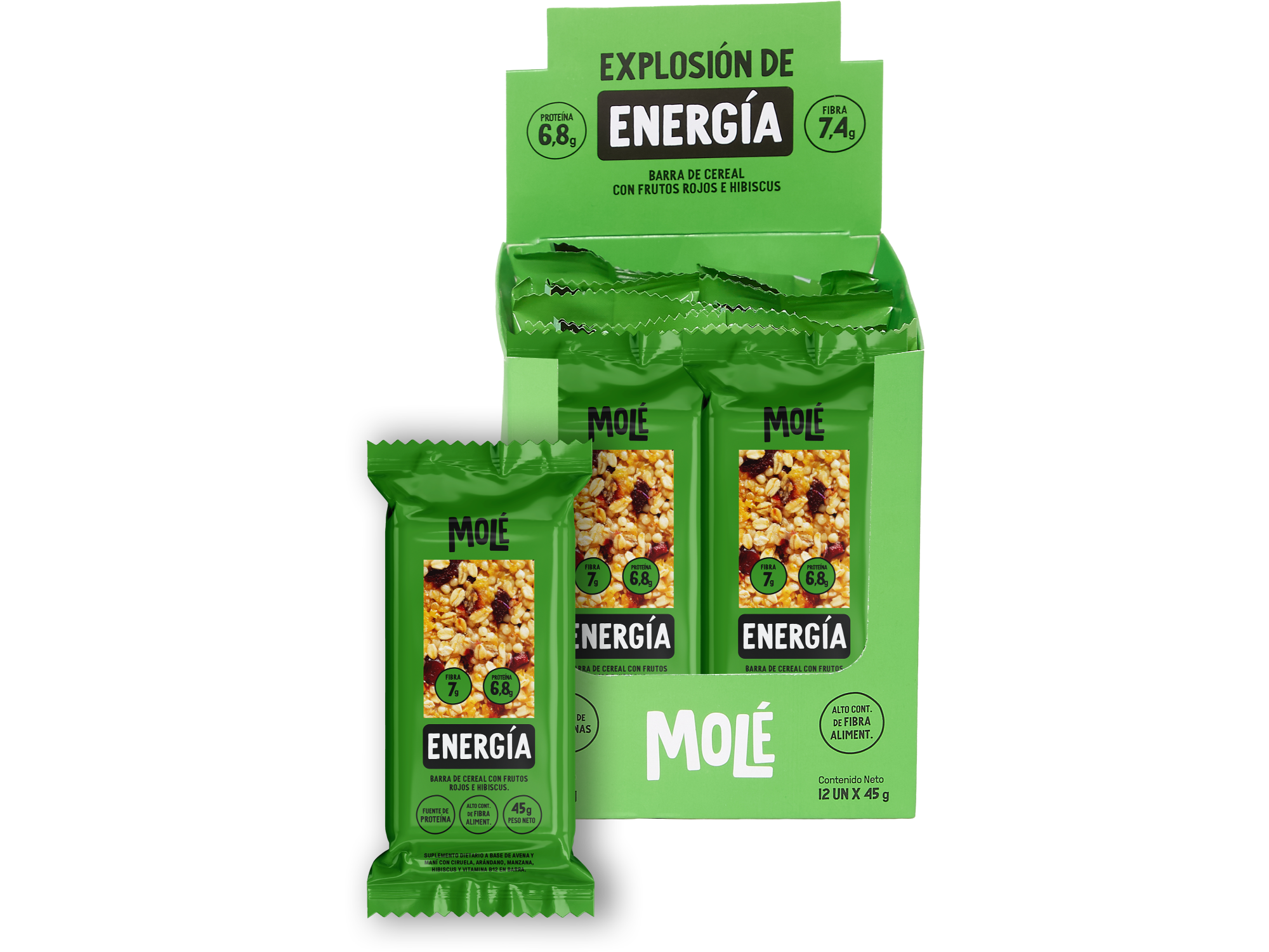 Energía - Caja 12 u Compartir por WhatsApp Copiar enlace BARRA DE CEREAL CON FRUTOS ROJOS E HIBISCUS Cont. Neto: 45 Gr FIBRA 7,4 g - PROTEÍNA 6,8 g Fuente de Proteínas. Alto contenido de fibra alimentaria. Alto contenido de Vitamina B12 Proteína de plantas$21.348 Observaciones 0 / 150
