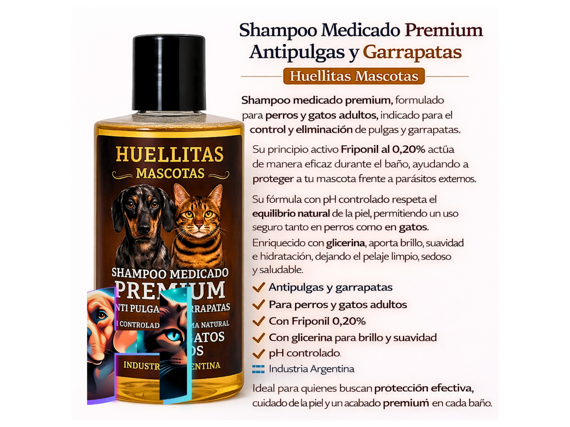 Shampoo "HUELLITAS" Premium Fipronil 250ml Compartir por WhatsApp Copiar enlace 🟢PRECIOS Y PROMOCIONES: Presentaciones Seleccioná las opciones que quieras.Precio de Lista: Medios de Pagos: Efectivo,Transferencia, Debito, Credito, QR y Link. $4.500$3.600 20% OFF Promocion Cantidad: Pack 12 Unidades (Efectivo o Transferencia) $54.000$36.000 33% OFF Observaciones 0 / 150 Encontrá productos relacionados RECOMENDADOS (57)