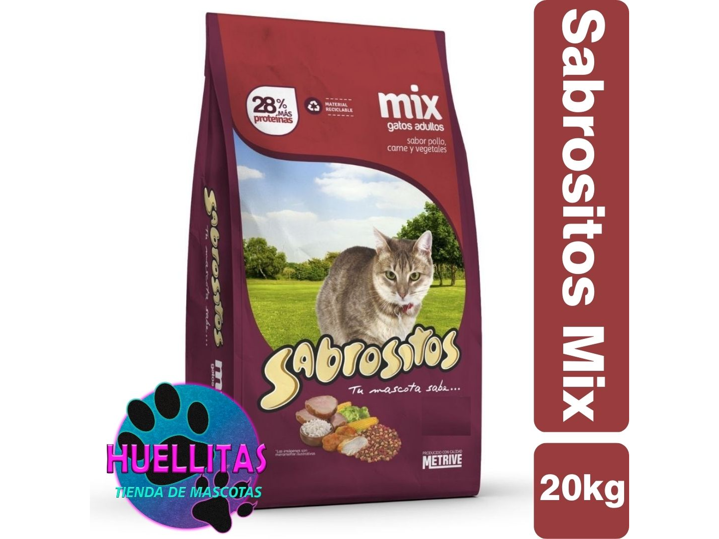 Sabrositos Gato Mix 20Kg Compartir 🟢PRECIOS Y PROMOCIONES: Presentaciones Seleccioná las opciones que quieras.Precio de Lista Medios de Pagos: Transferencias, Débito, Crédito, QR y Link. $39.500Promo Abonando en Efectivo Solo para pagos con billetes. $39.500$37.100 6% OFF Fracción x 1kg Alimentos suelto. $2.200Promo Mayorísta Precio válido desde 3 unidades iguales, solo Pagos en Efectivo. $39.500$35.600 10% OFF Complementos para tu pedido Agregá items adicionales a tu pedido. EXTRA: PREMIO/ GOLOSINA Seleccioná las opciones que quieras.Pouch de Whiskas 85g$1.500PACK X 10 PALITOS EXTRUSADOS (PREMIO COMESTIBLE) SNACK PARA PERROS. $750$700 7% OFF PACK X 40 PALITOS EXTRUSADOS (PREMIO COMESTIBLE) SNACK PARA PERROS. $3.000$2.800 7% OFF Comederos Seleccioná las opciones que quieras.Comederos Clasico Mediano$2.000$1.300 35% OFF Comederos Clasico Grande$3.000$2.800 7% OFF Observaciones 0 / 150