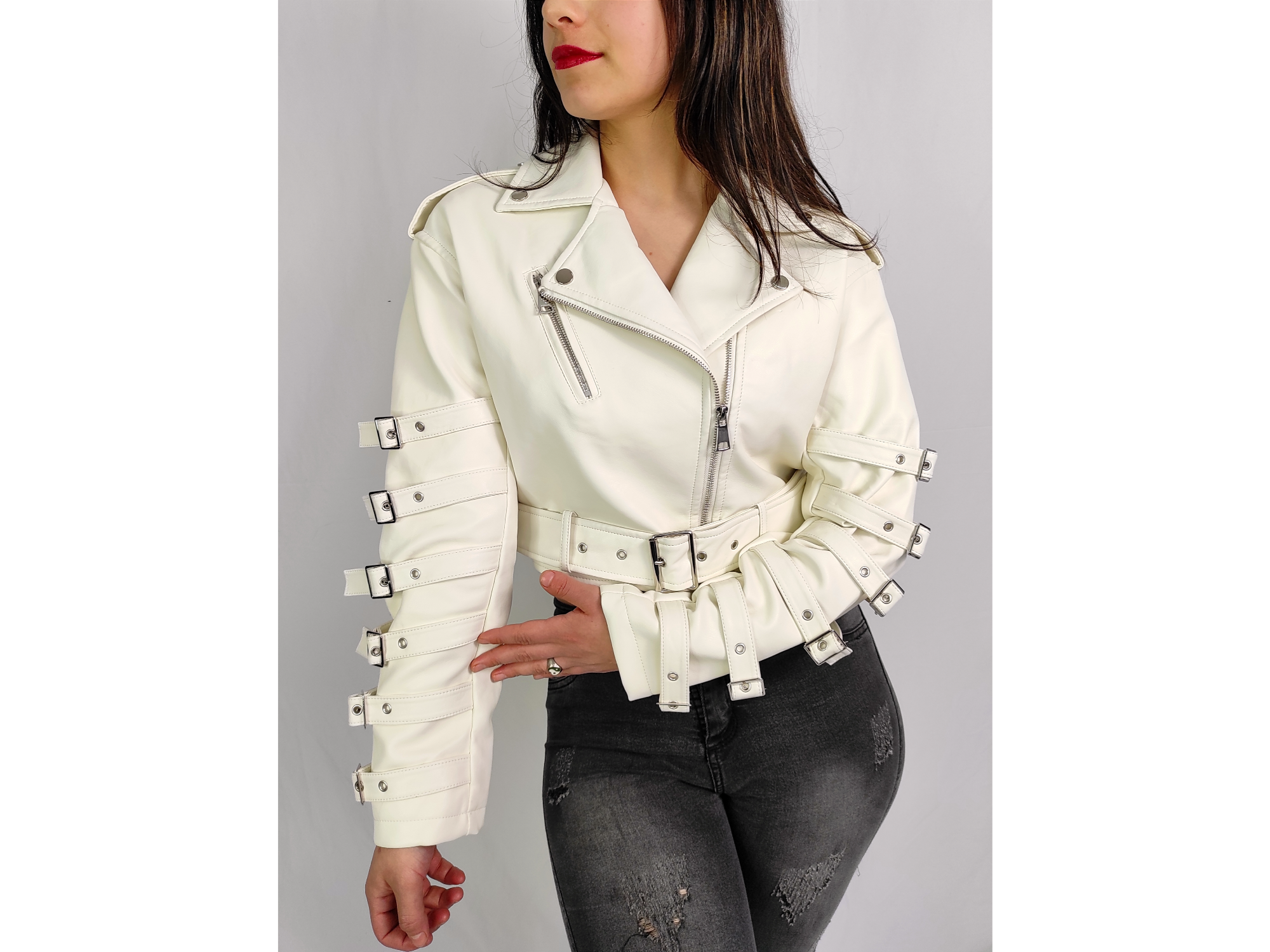 Tirana Compartir Campera ecocuero con hebillas en mangas y cinto Colores: blanco y negro Presentaciones Seleccioná las opciones que quieras.Talle XL$41.000$30.000 27% OFF Talle XXL$41.000$30.000 27% OFF Observaciones 0 / 150