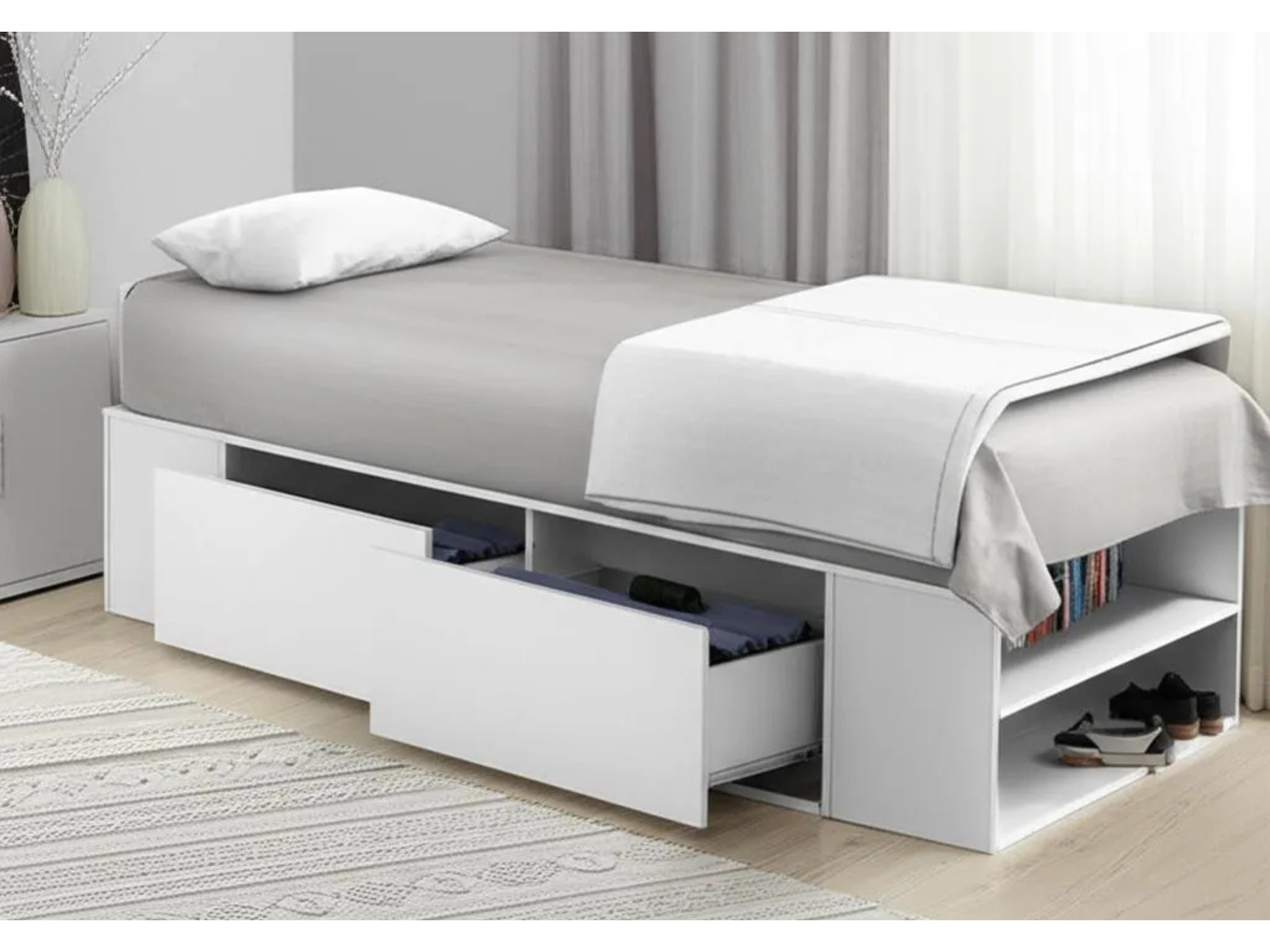 Cama con cajones y botineros - 0.93 - Blanco