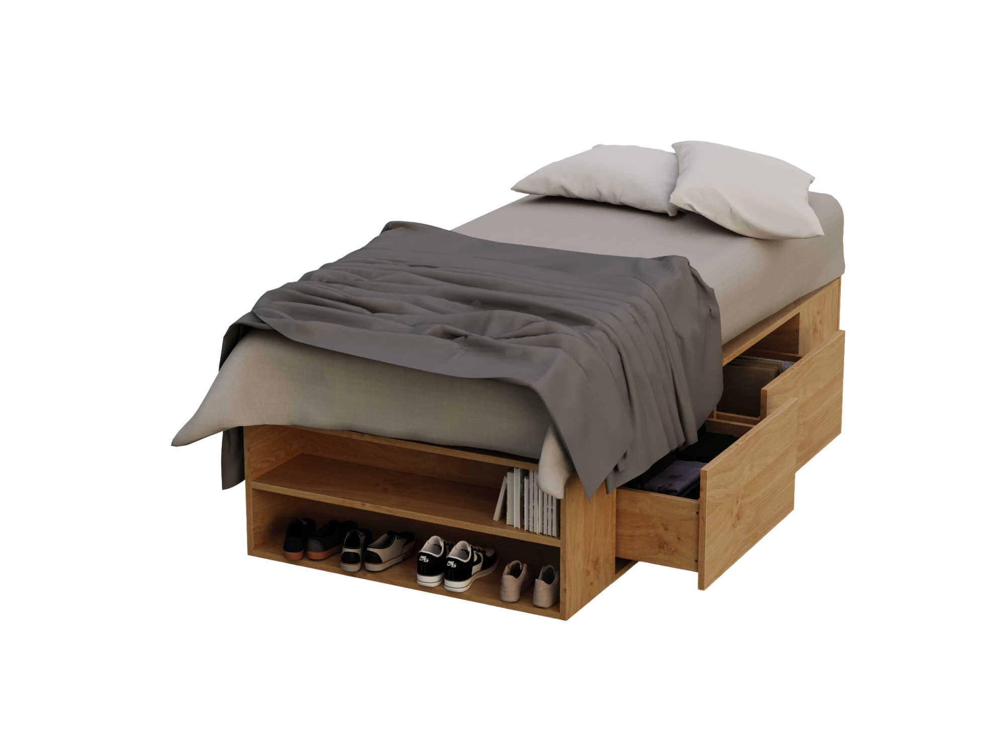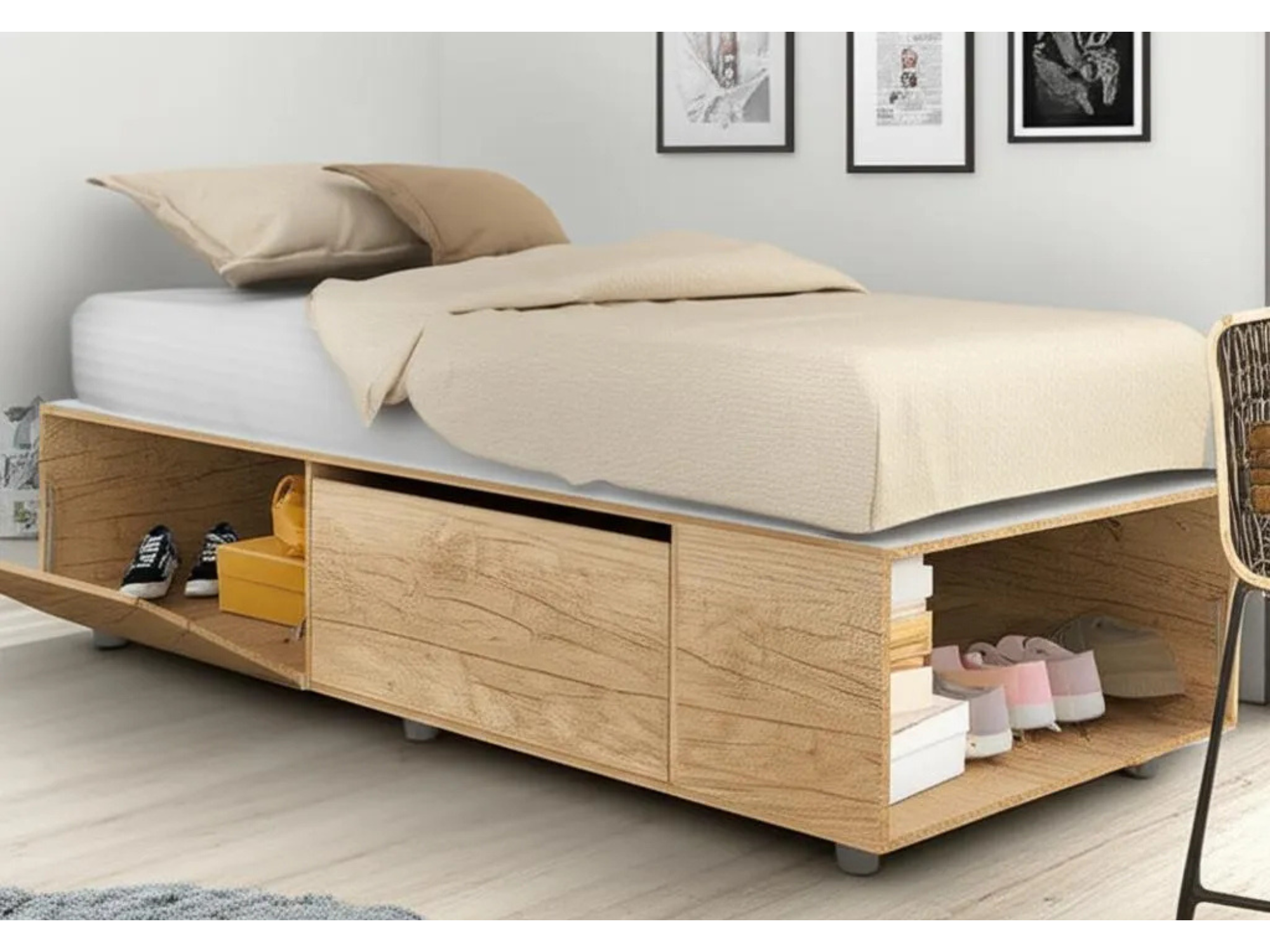 Cama con cajones y botineros Roble Kendal - 0.93