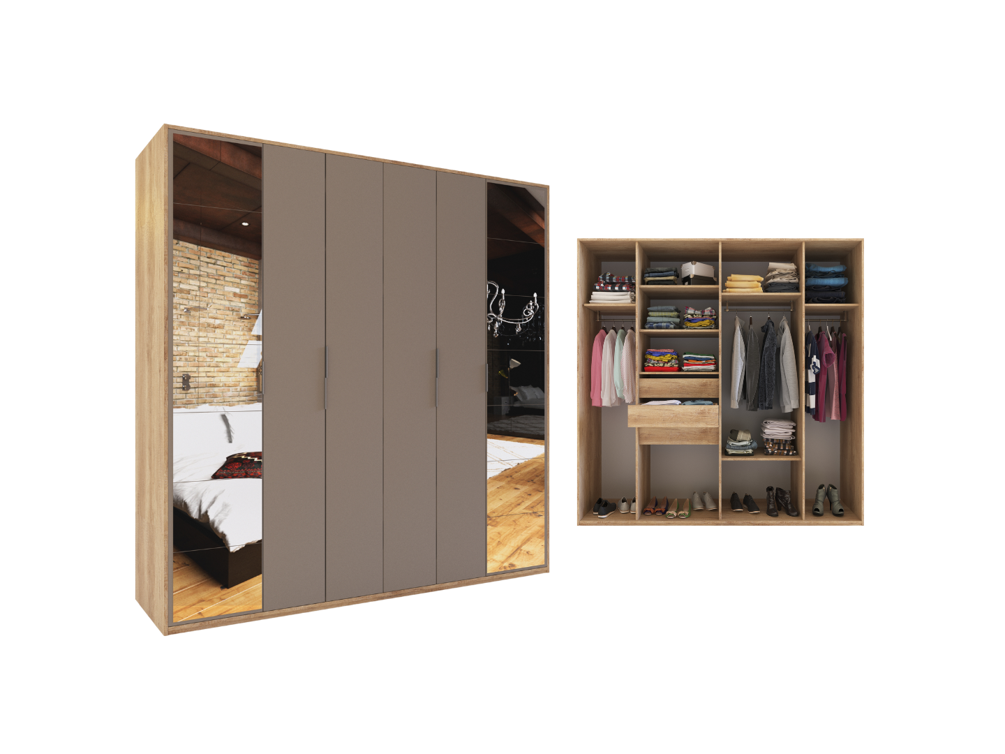 Ropero Duo 6 puertas con espejo 2.20 Mts