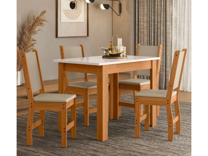 Mesa Bellagio 1.10Mts + 4 Sillas Clara (Freijo/Off White)