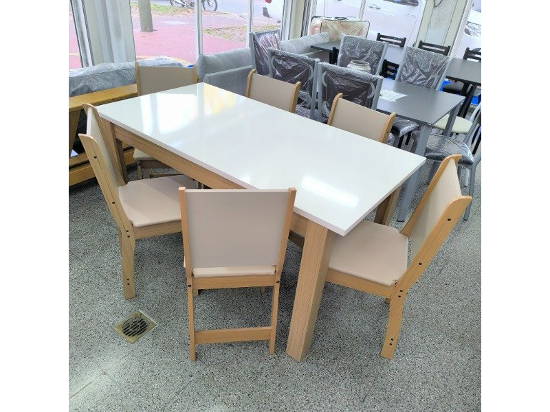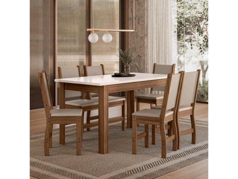 Mesa Bellagio 1.50Mts + 6 Sillas Clara (Carvalho/Off White)