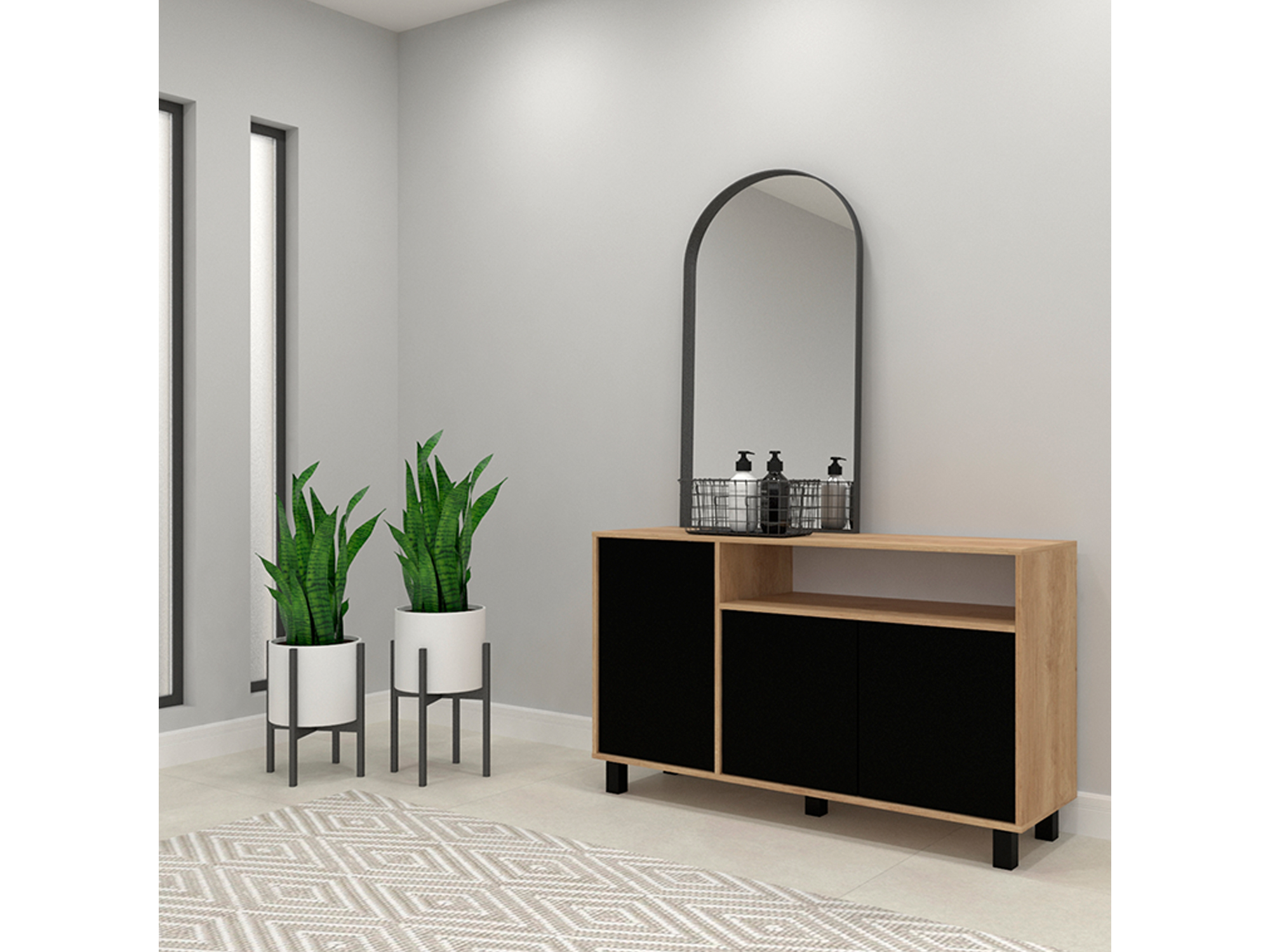 Vajillero Door 130 - Bambu / Negro