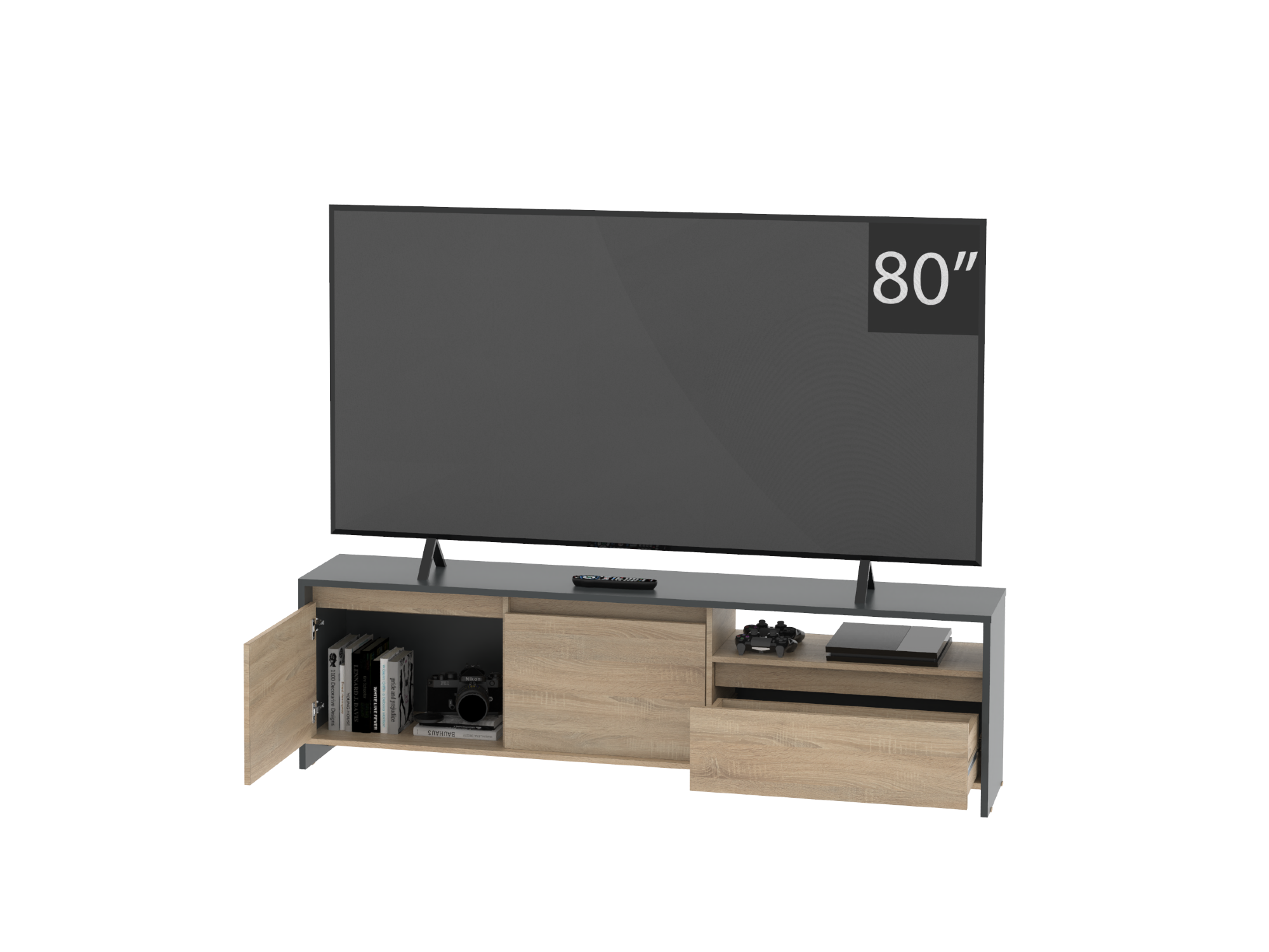 Rack TV NIZA con Cajon 1,80Mt Gris - Roble Kendal