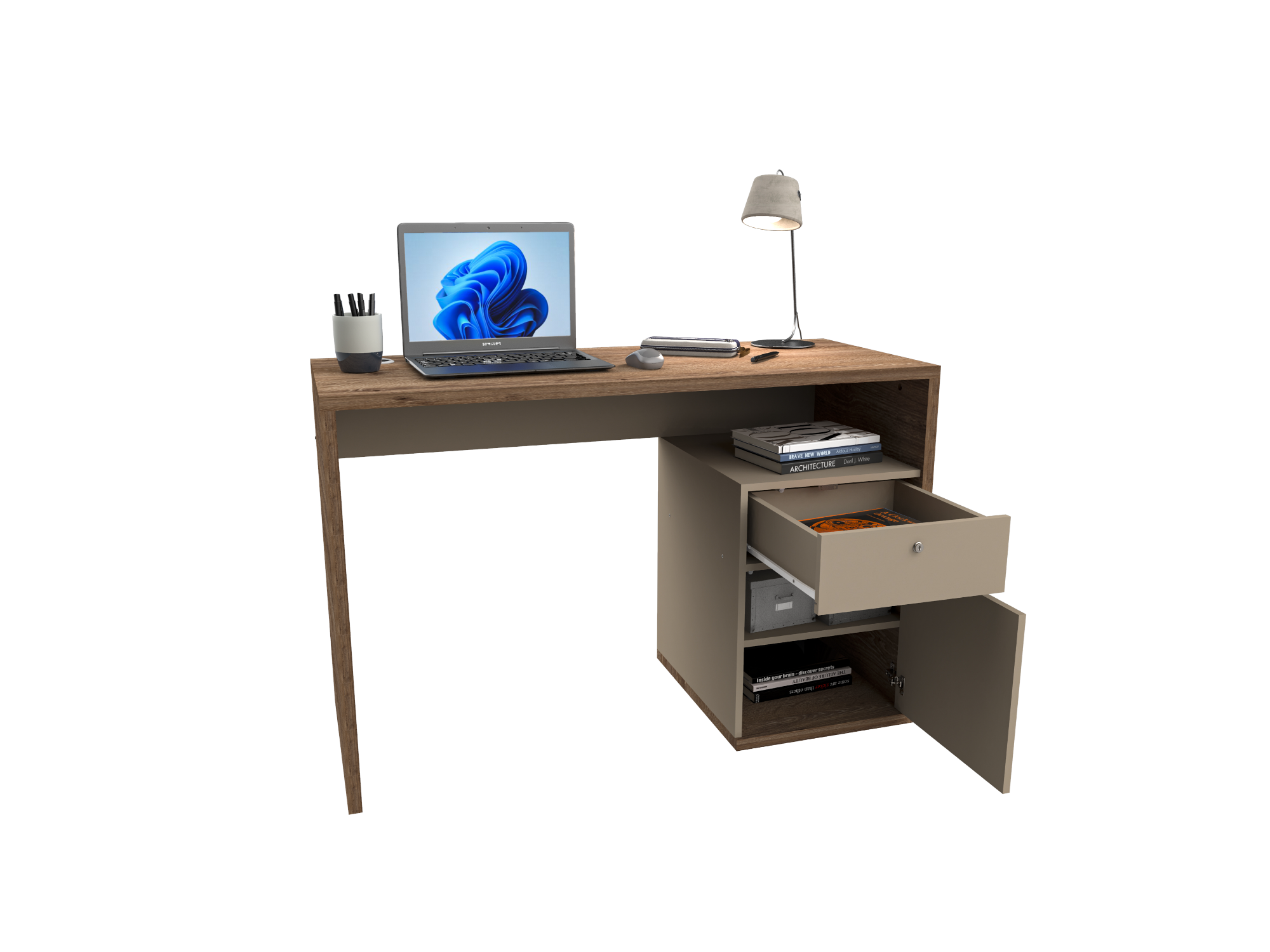 Escritorio 1 puerta + 1 cajon 1.20 Mts Roble Davos / Gris Arcilla