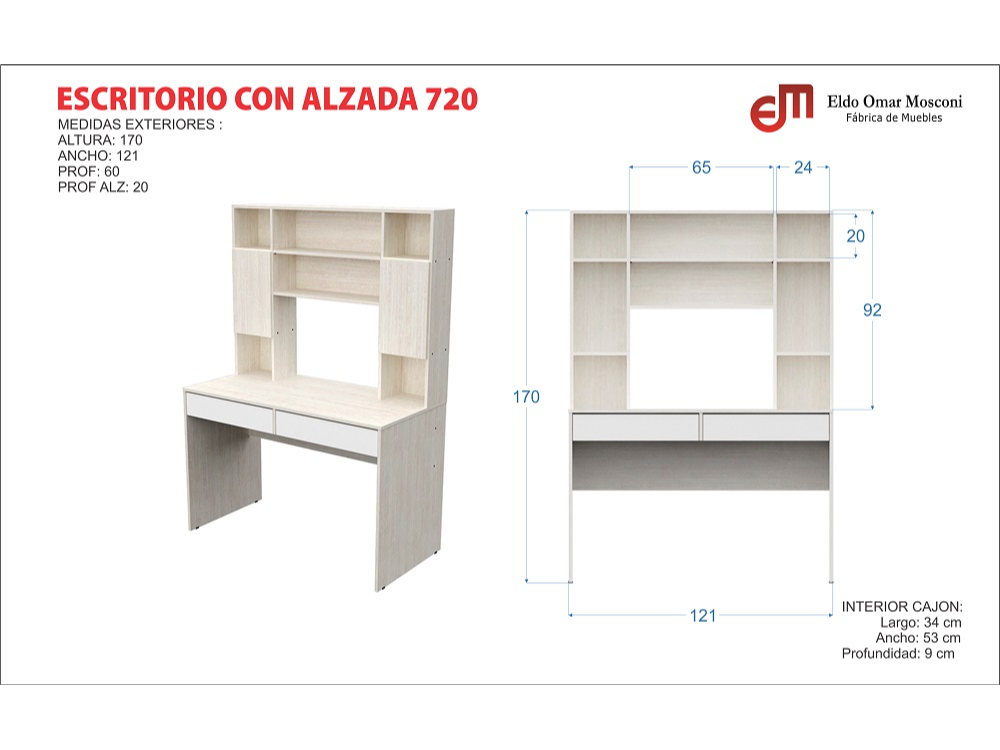 Escritorio de Computación 720 Con Alzada - (4 colores)