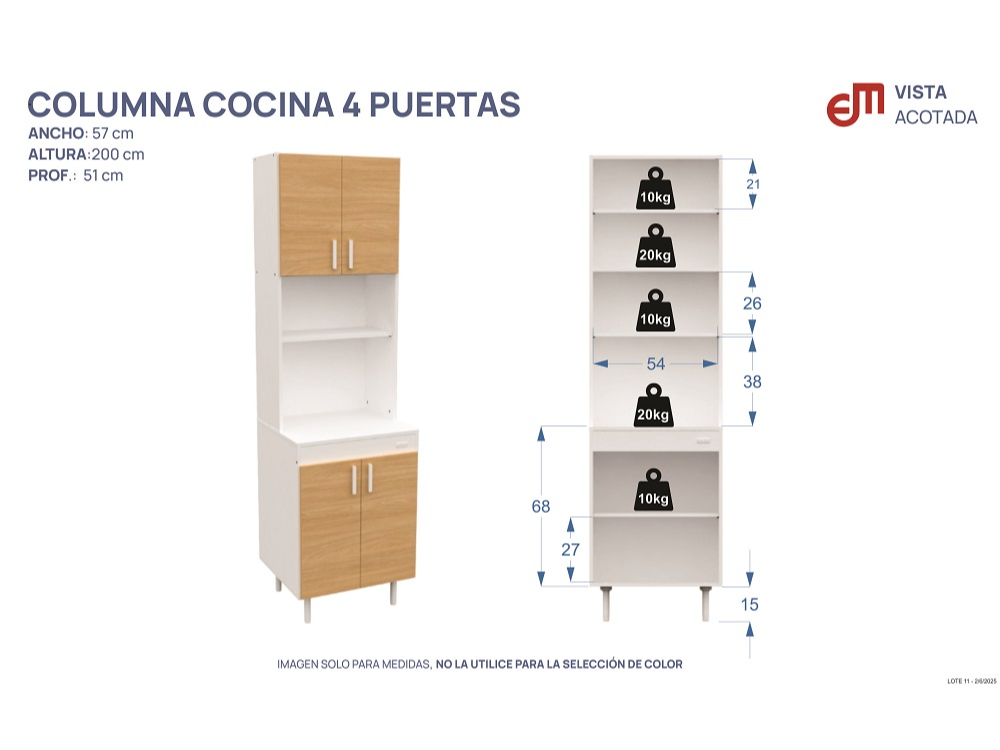 Columna Cocina - 4 Puertas - Blanco/Avellana