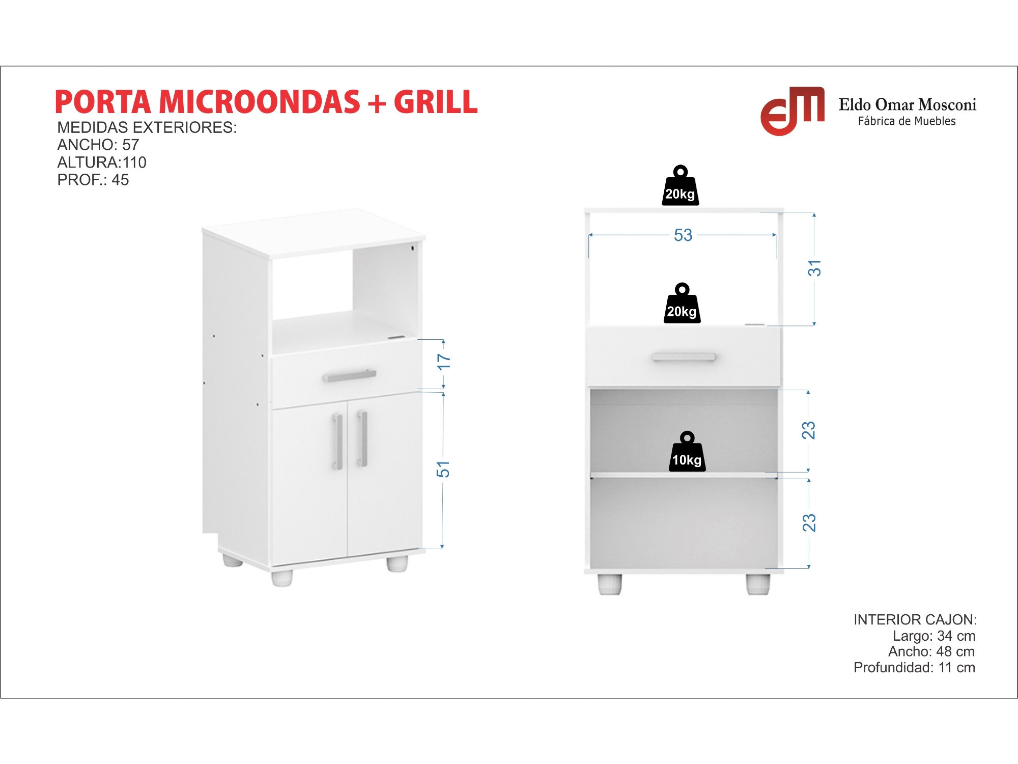 ✅ Incluye todos los accesorios necesarios (tornillos, bisagras, correderas, etc.).