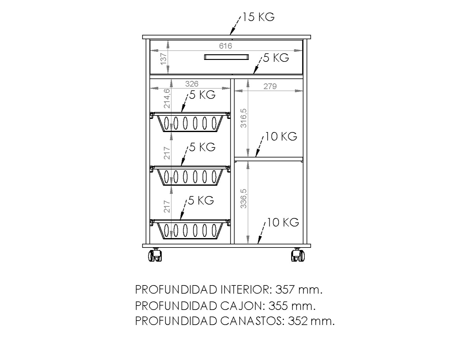 ✅ Incluye todos los accesorios necesarios (tornillos, bisagras, correderas, etc.).