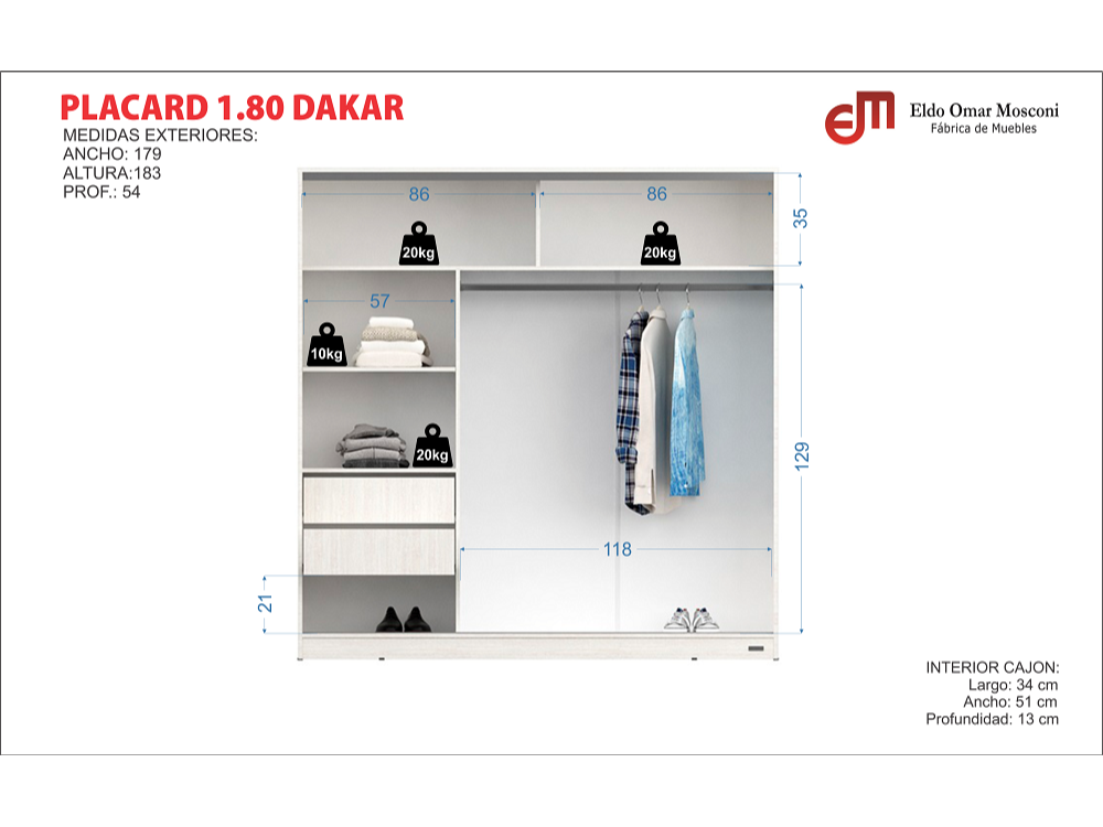 Placard Dakar 1.80 Mts - (3 colores)