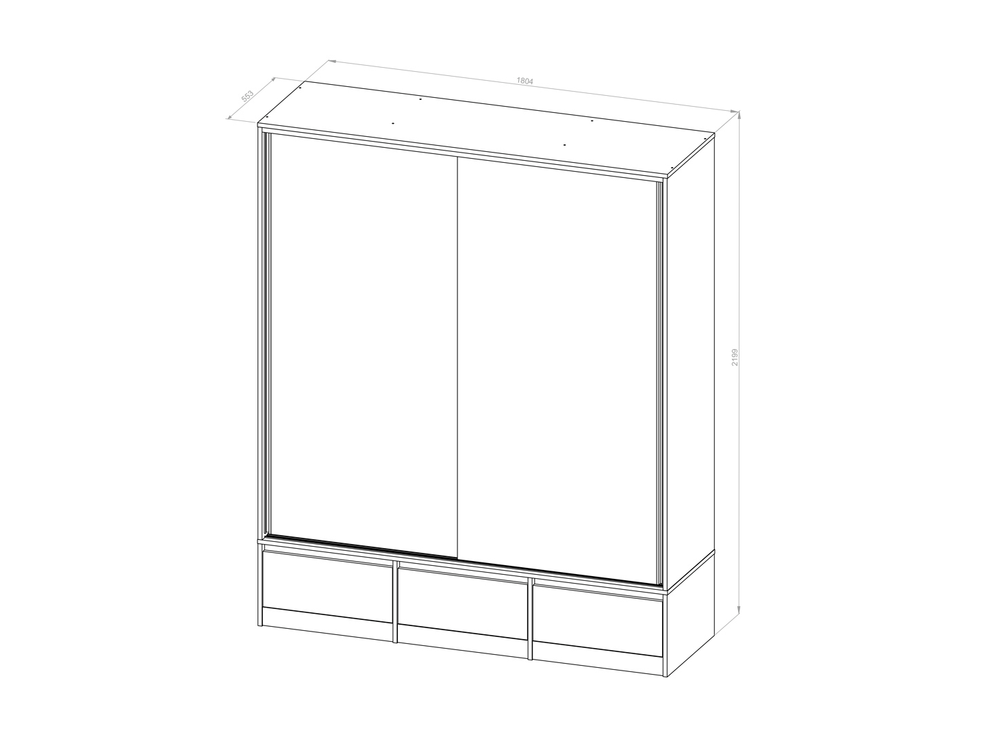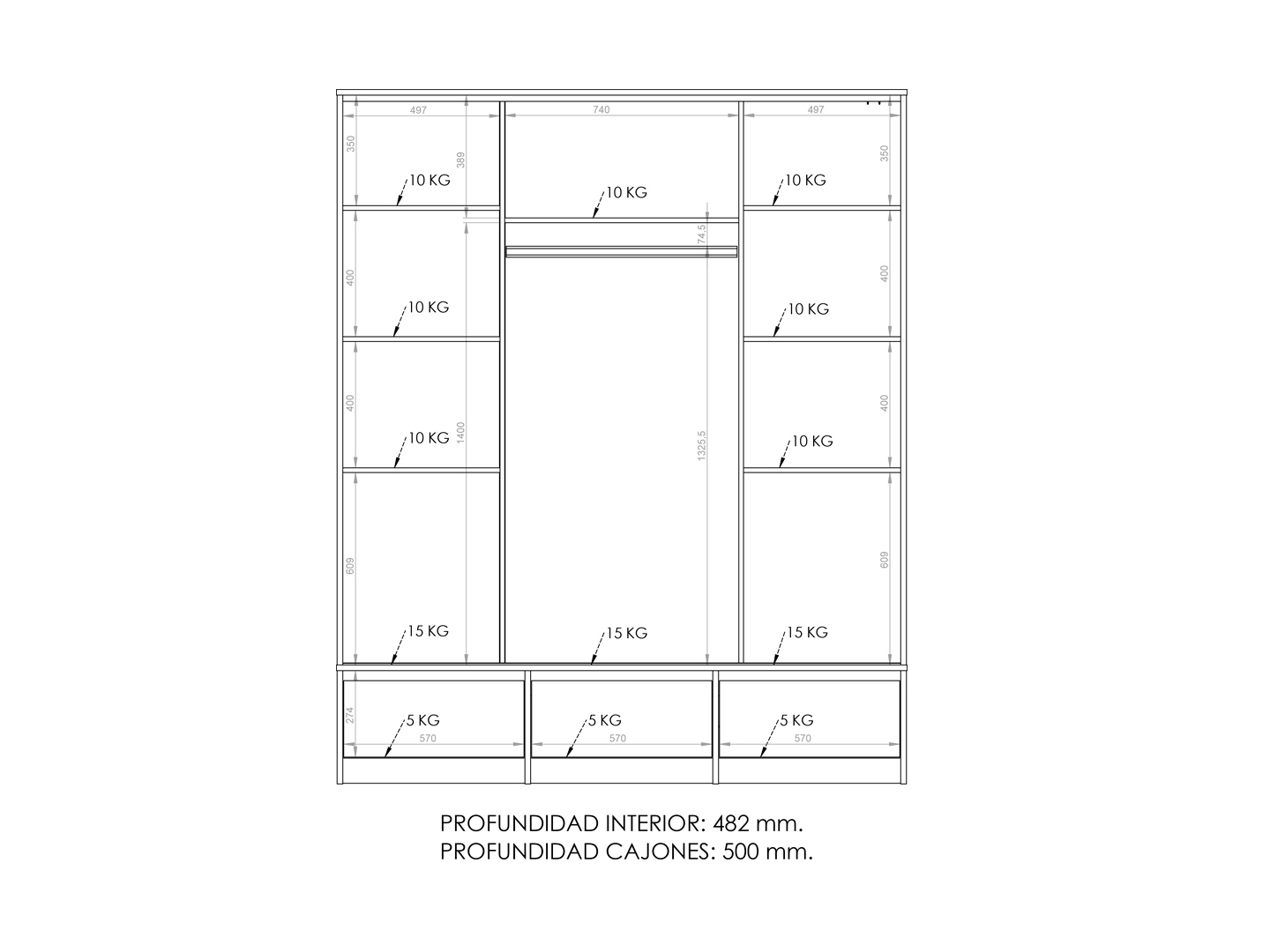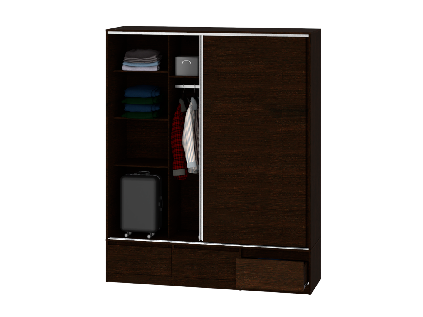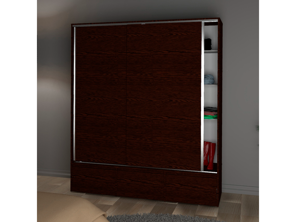Placard 2 Puertas Corredizas 3 Cajones Externos 1,80 Mt Wengue
