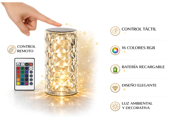 Dale un toque moderno y minimalista a tus espacios con esta lámpara LED decorativa de diseño completamente transparente. Su estructura estilizada y su iluminación suave la convierten en una opción ideal para escritorios, mesas de noche o rincones decorativos.