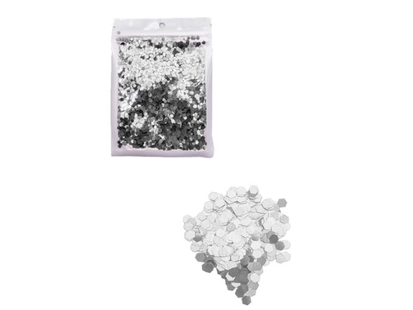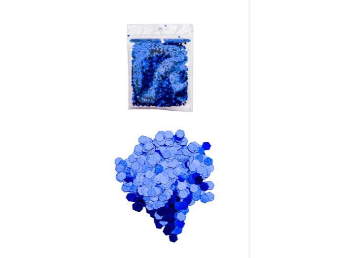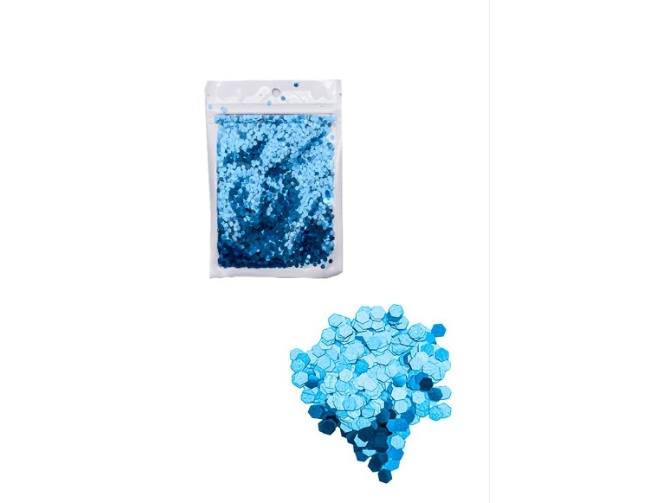 Cola de sirena metalizada, en envase de 15 gramos, de forma hexagonal de 3mm.. Envase contenedor: bolsa tipo ziploc para su mejor conservación y guardado. Colores disponibles a elección. USOS: Estos productos son aptos en el uso de resina como también para la fabricación de geles con glitter para maquillaje. Producto importado.