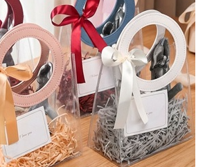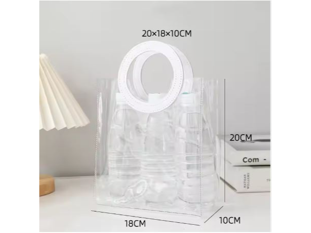 Bolsas de Regalo de Plástico PVC transparente - CON MANIJA EN CUERINA CON COLOR ( VER FOTOS ) PRECIO X UNIDAD ) Detalles del Producto: - Material: PVC plástico durables - resistente - Reutilizable -Medida 20 x 18 x 10 de fuelle Instrucciones de Cuidado: Para la limpieza, use jabón o detergente neutro y una esponja suave. Si desea realzar su regalo o souvenir, esta Bolsa de Regalo Pequeña de Plástico es ideal. Cualquier souvenir, regalo o presente lucirá más lujoso y glamuroso con esta bolsa/envase.