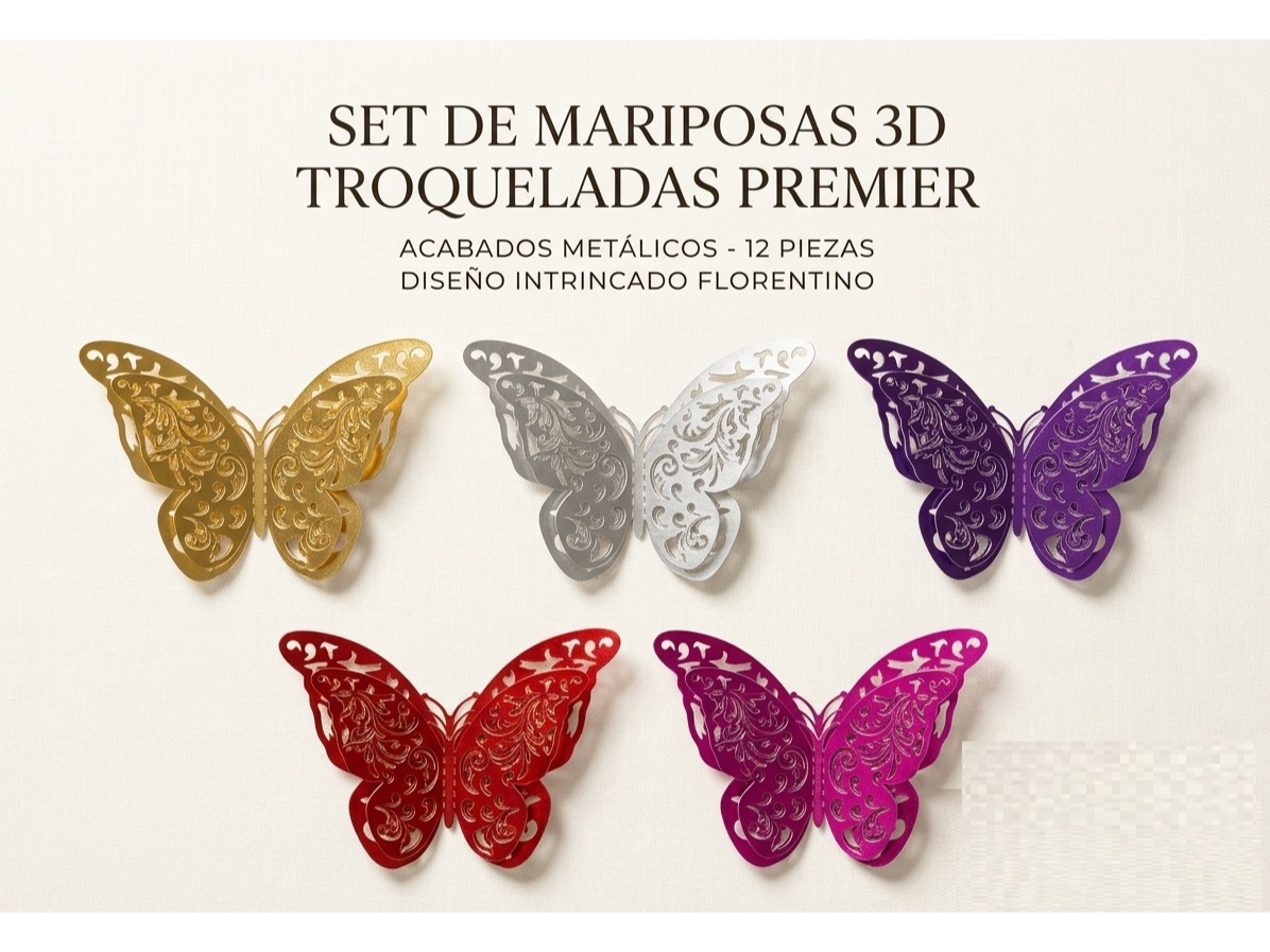 ADORNO MARIPOSA ESTAMPADO PACK 12 UNIDADES METALIZADA - COLOR A LECCION
