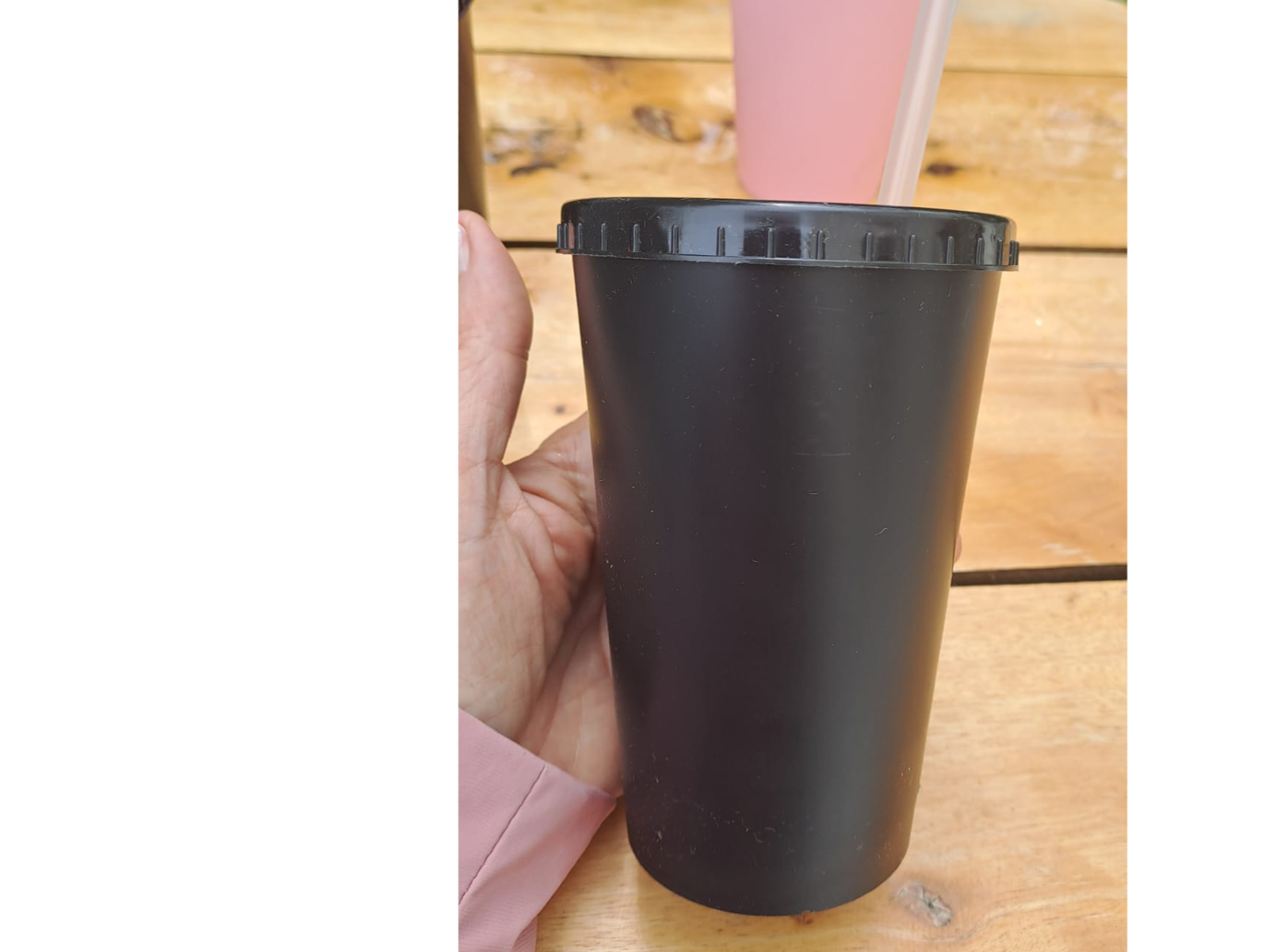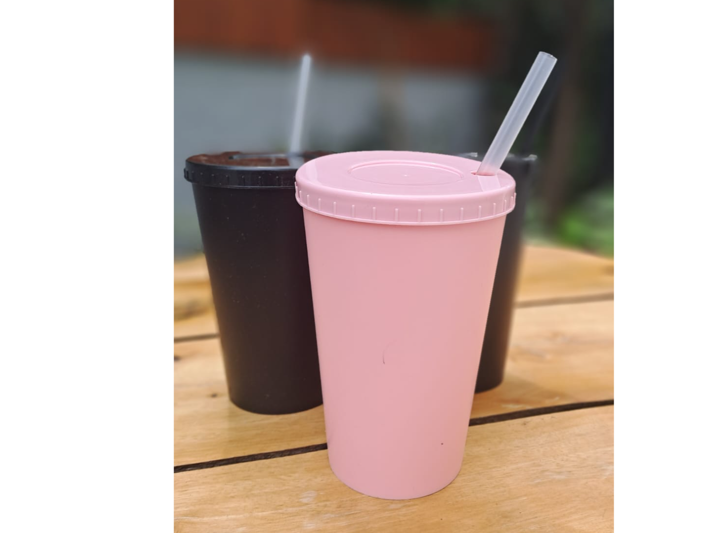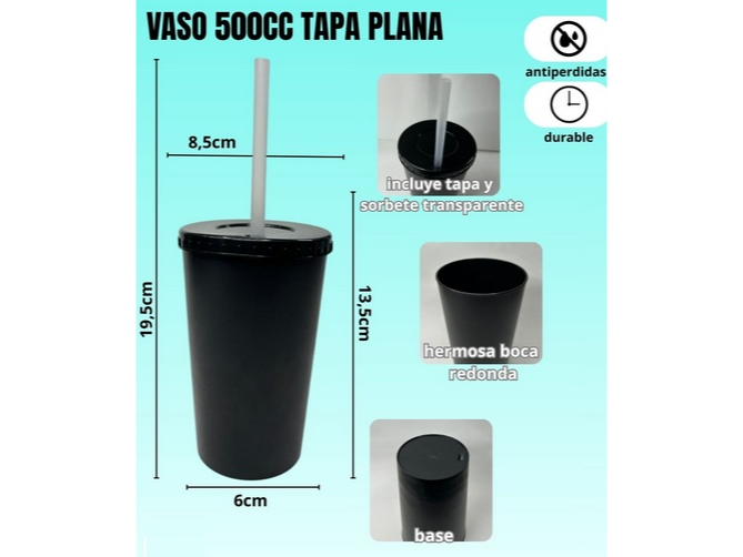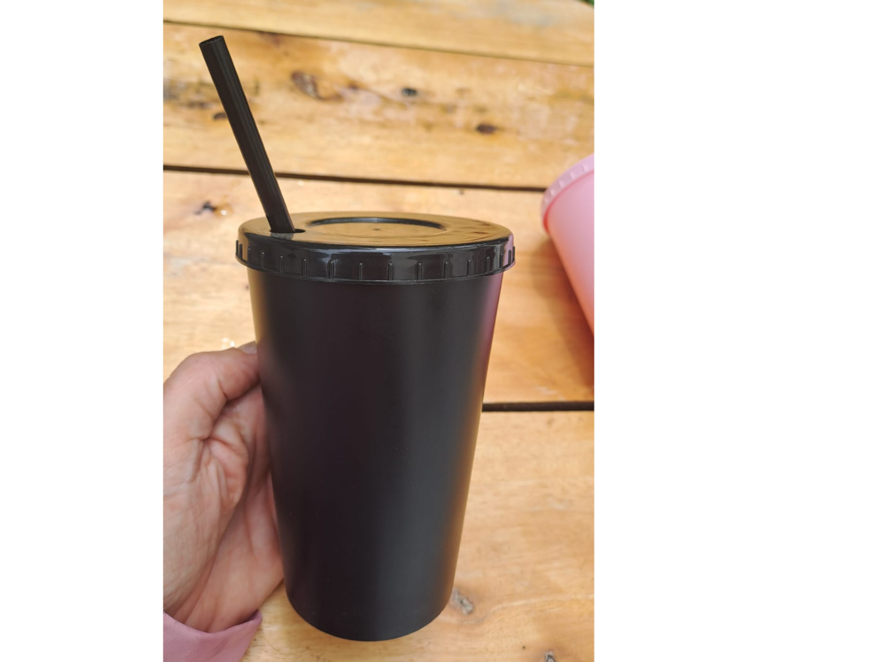 Vaso BUM 500 CC de plástico rígido - Calidad en vasos - Con tapa PLANA sorbete Reutilizable NEGRO . sorbete descartable negro . Capacidad: 500 cc.