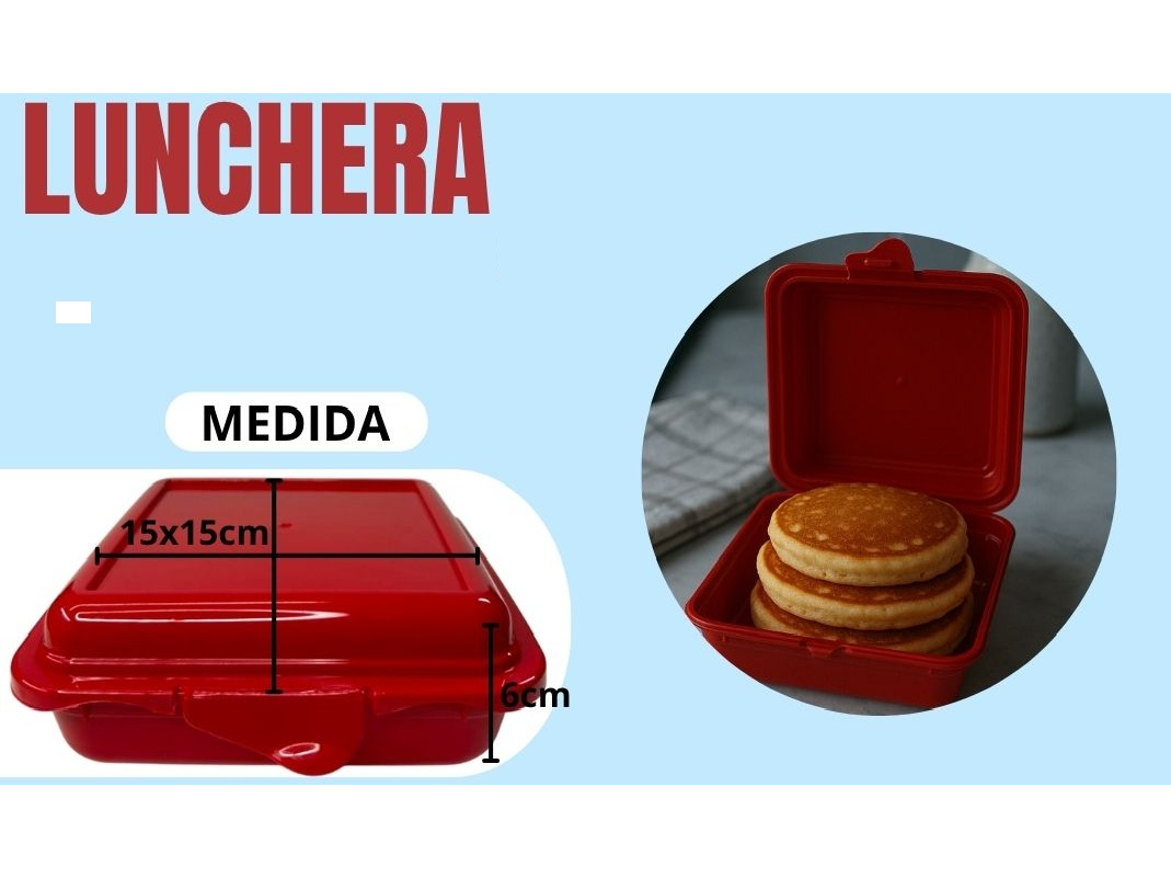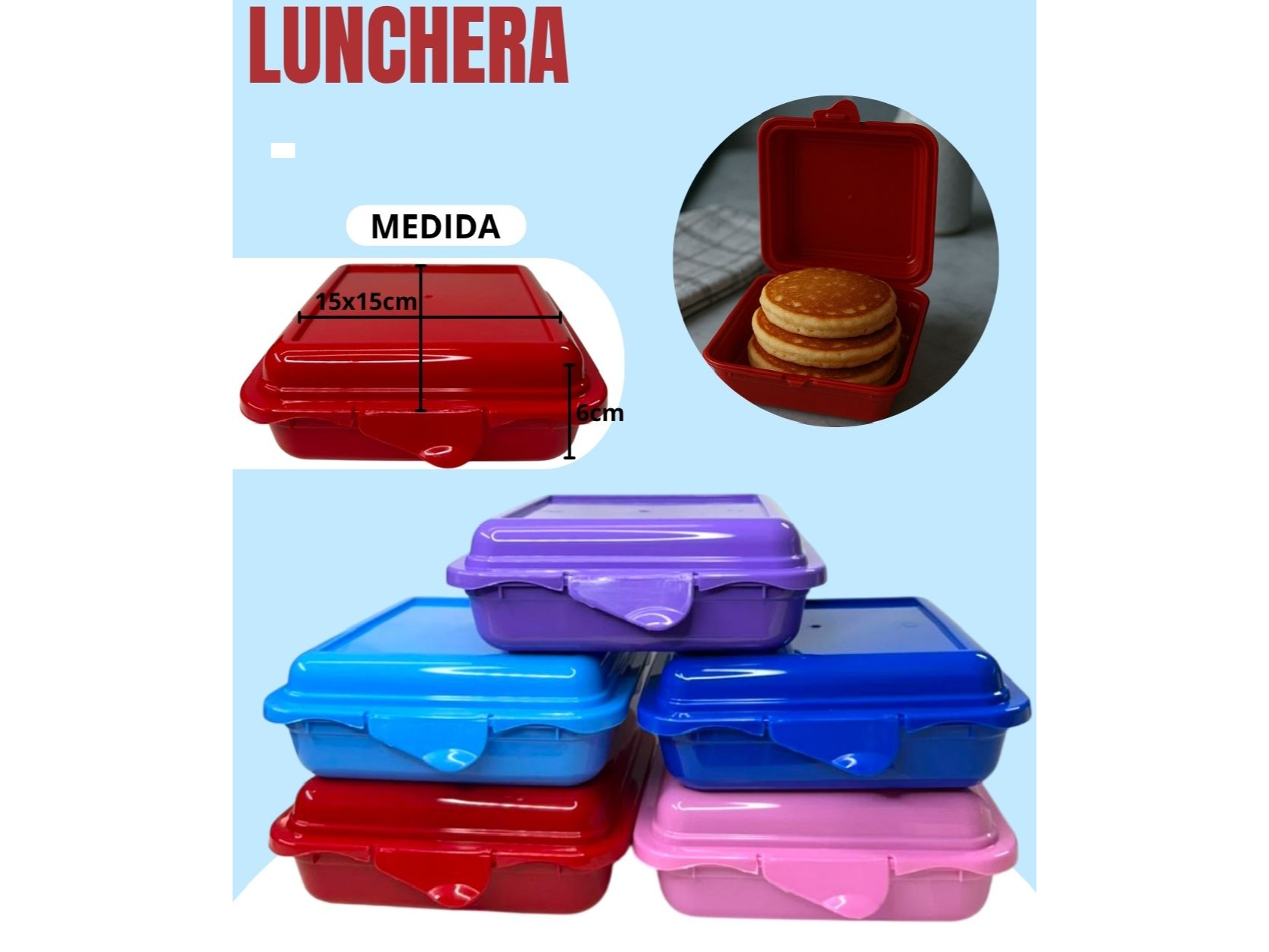 Lunchera plastica cuadrada con tapa bisagra. Medida: 15 cm. x 15 cm. x 6 cm. Ideal para personalizar. Excelente opción para obsequiar, souvenirs, jardines de infantes, escuela, clubes, etc. Plástico Colores a elección.