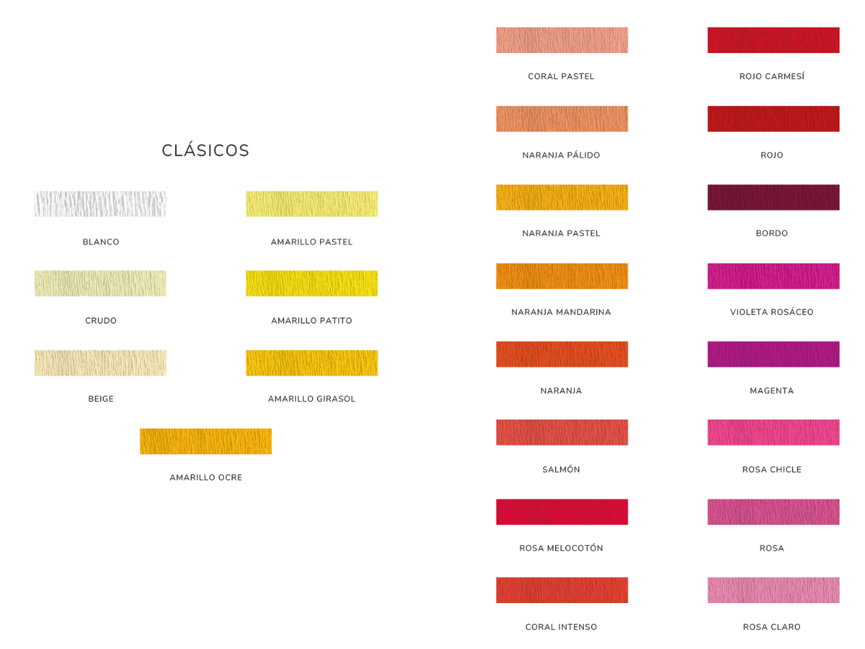 PAPEL CREPE *CLASICOS * - 10 HOJAS DE 50 x 70 cm -CREPELINA