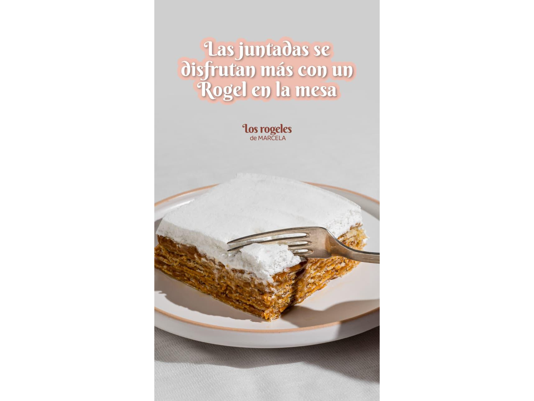 1/2 - MEDIO ROGEL (Hasta 15 porciones) Compartir El rogel tiene un diámetro de 32cm y pesa aprox. 2,7 kg. Si lo cortas en cuadrados de 5x5 cm te salen 30 porciones y entre 16/20 si lo cortás en triángulos.$39.000 Observaciones 0 / 150