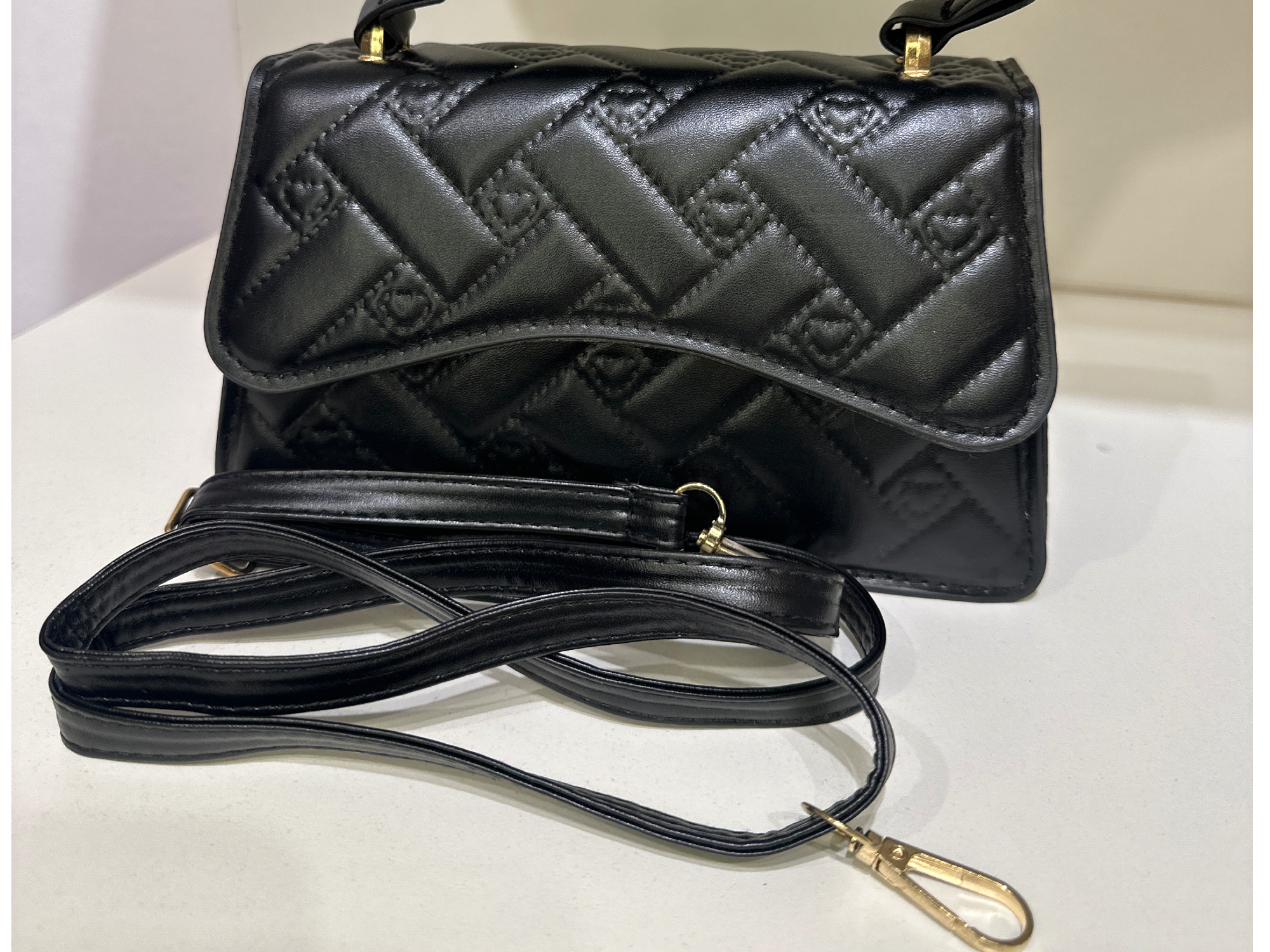 Mini bag Negra Compartir Última unidad Mini bag Negra, herrajes dorados y tira regulable.$31.000 Observaciones 0 / 150