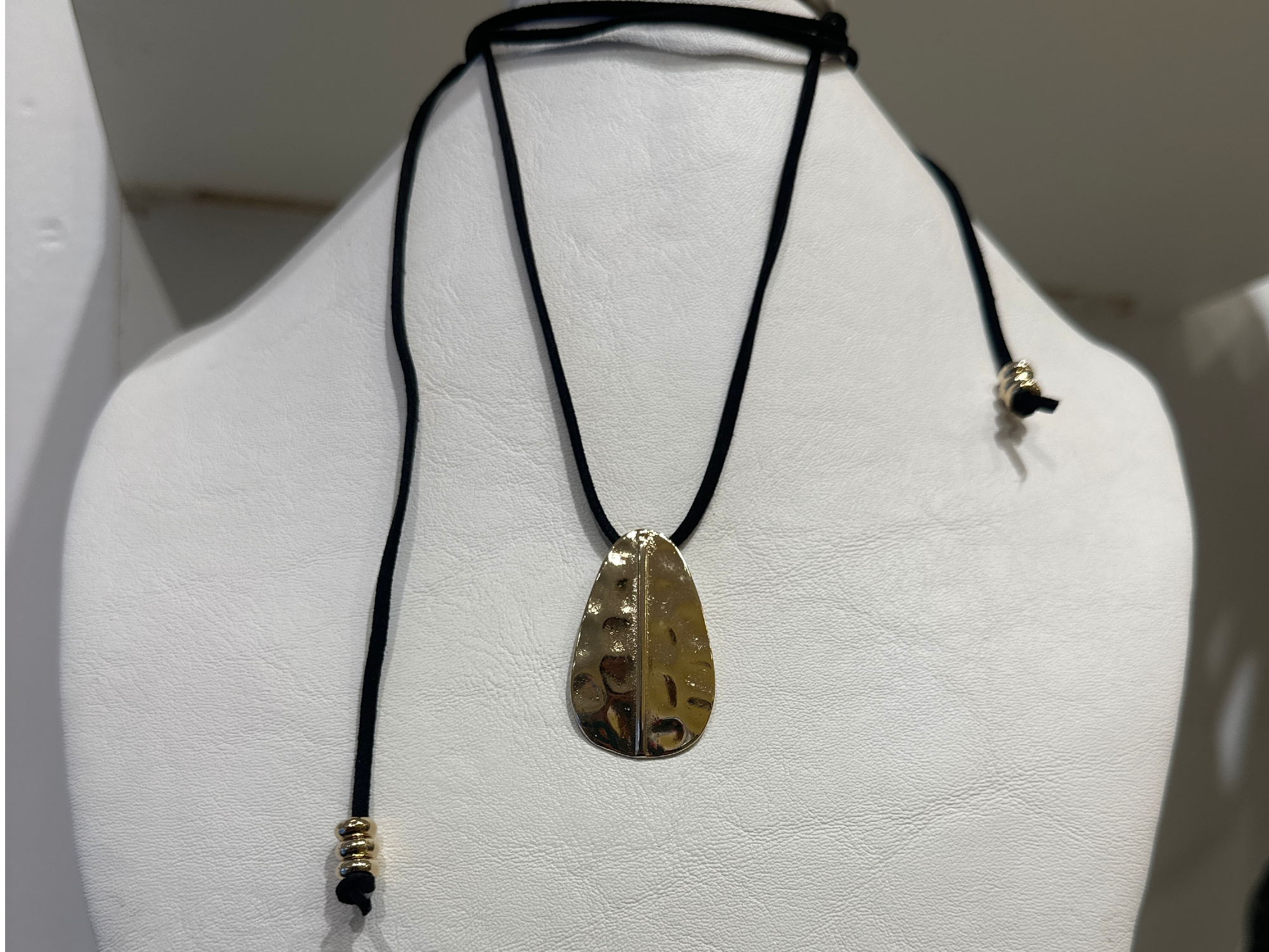 Choker Hoja Compartir Última unidad Choker hoja dorada tamaño mediano, color de gamuza negro.$3.500 Observaciones 0 / 150