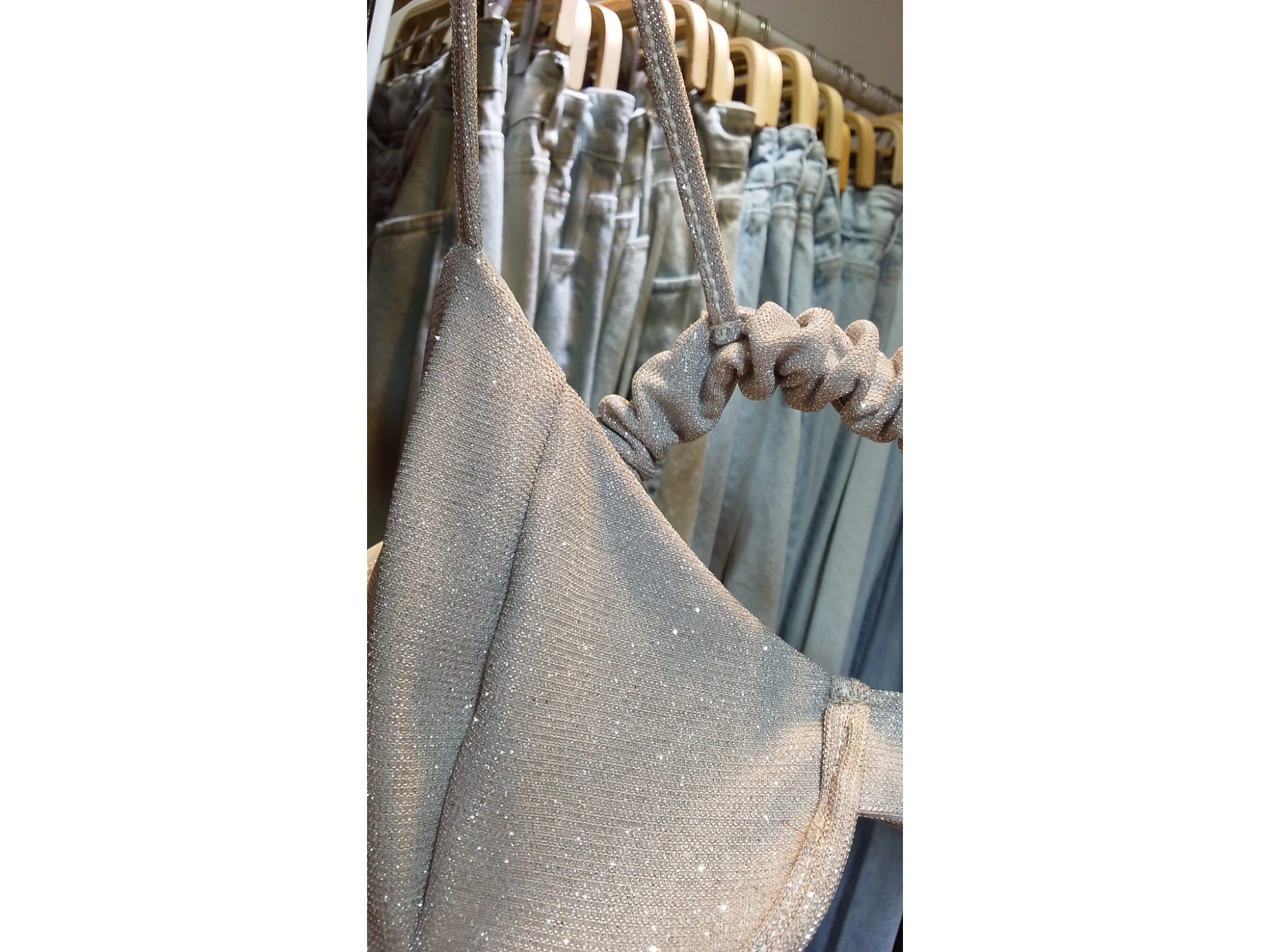 Corpiño top Compartir 6 unidades en stock Corpiño top glitter Dorado y gris T.U$26.000$17.999 31% OFF Observaciones 0 / 150