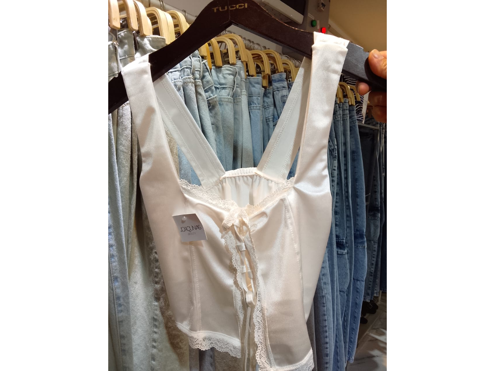 Top pia Compartir 9 unidades en stock Top satén y brodery Tipo corset T.U$19.900 Observaciones 0 / 150