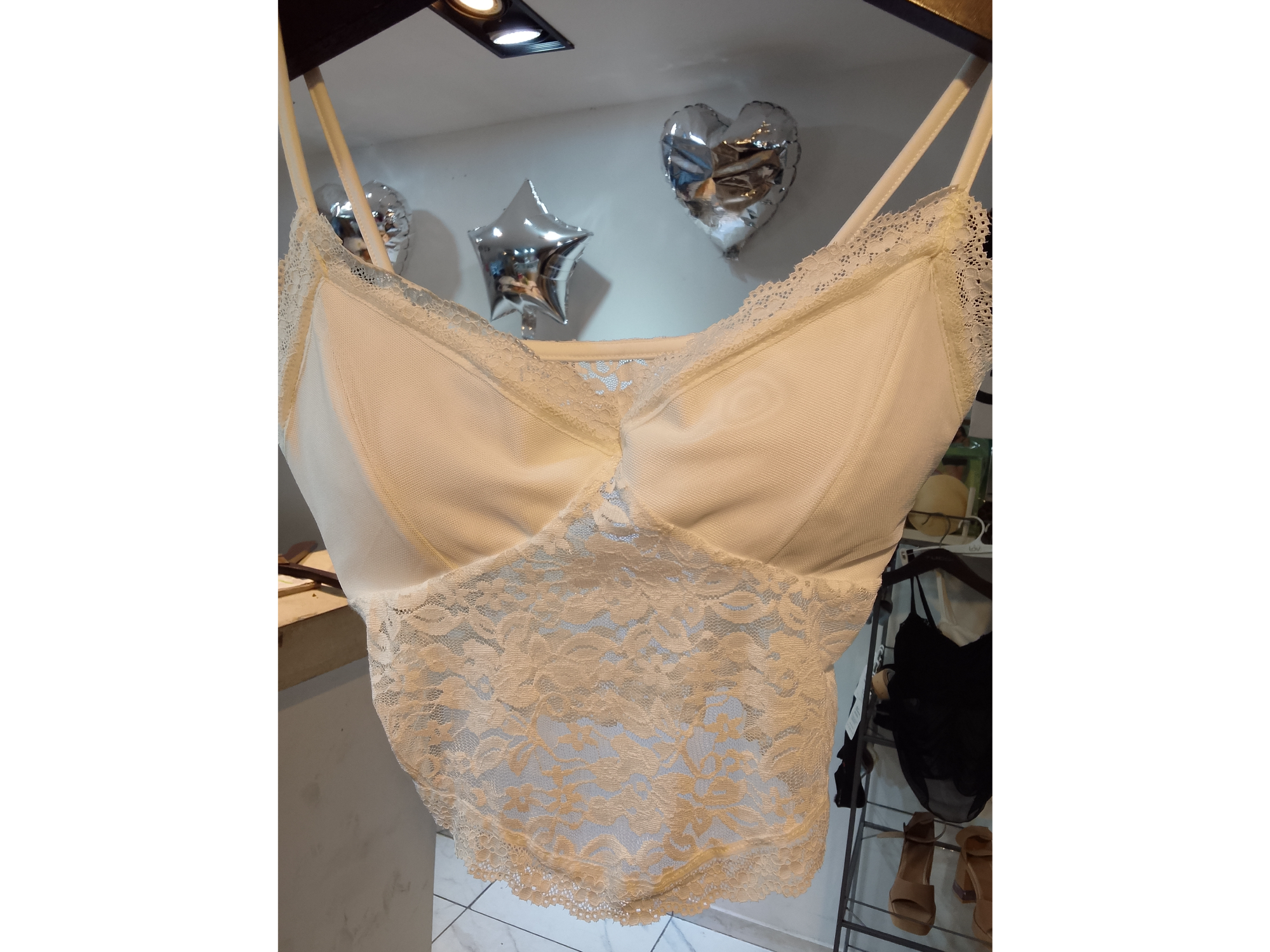 Top Giulia Compartir 10 unidades en stock Encaje Con taza Colores disponibles: •Blanco •Negro T.U$18.999 Observaciones 0 / 150