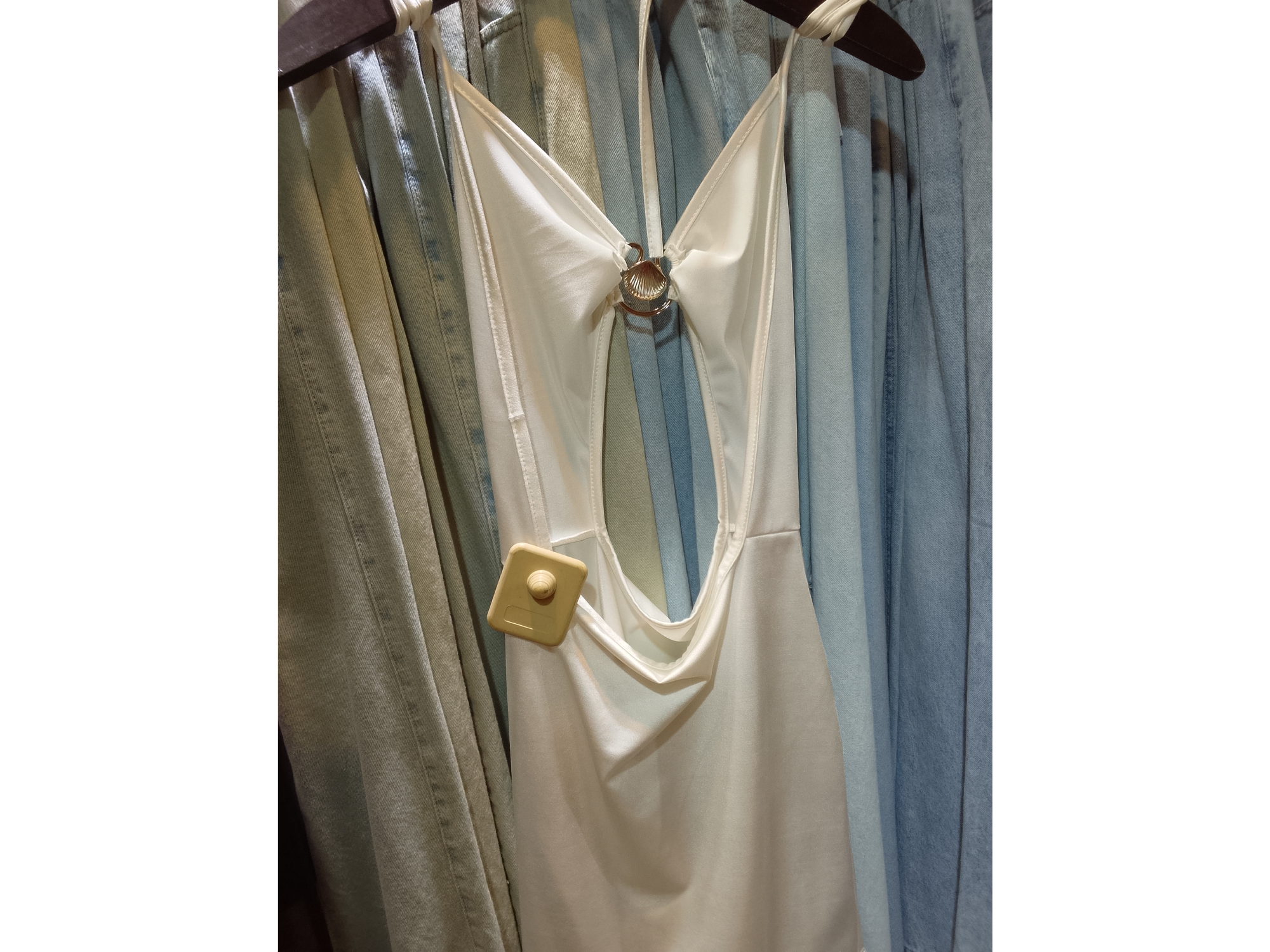 Vestido Noche Ariel Compartir 12 unidades en stock Con hebilla Licra luminosa Se ata al cuello Espalda descubierta T.U Colores disponibles: •Blanco •Negro$26.990 Observaciones 0 / 150