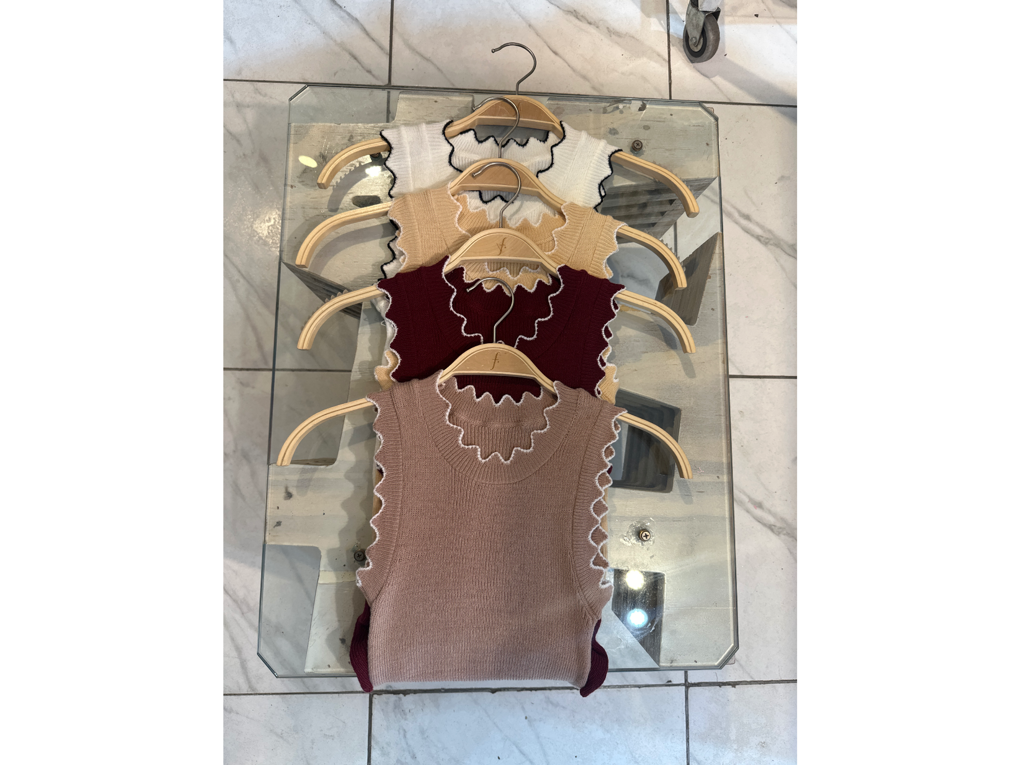 Musculosa tejida Compartir 7 unidades en stock Musculosa tejida con vuelo en costura$16.500 Observaciones 0 / 150