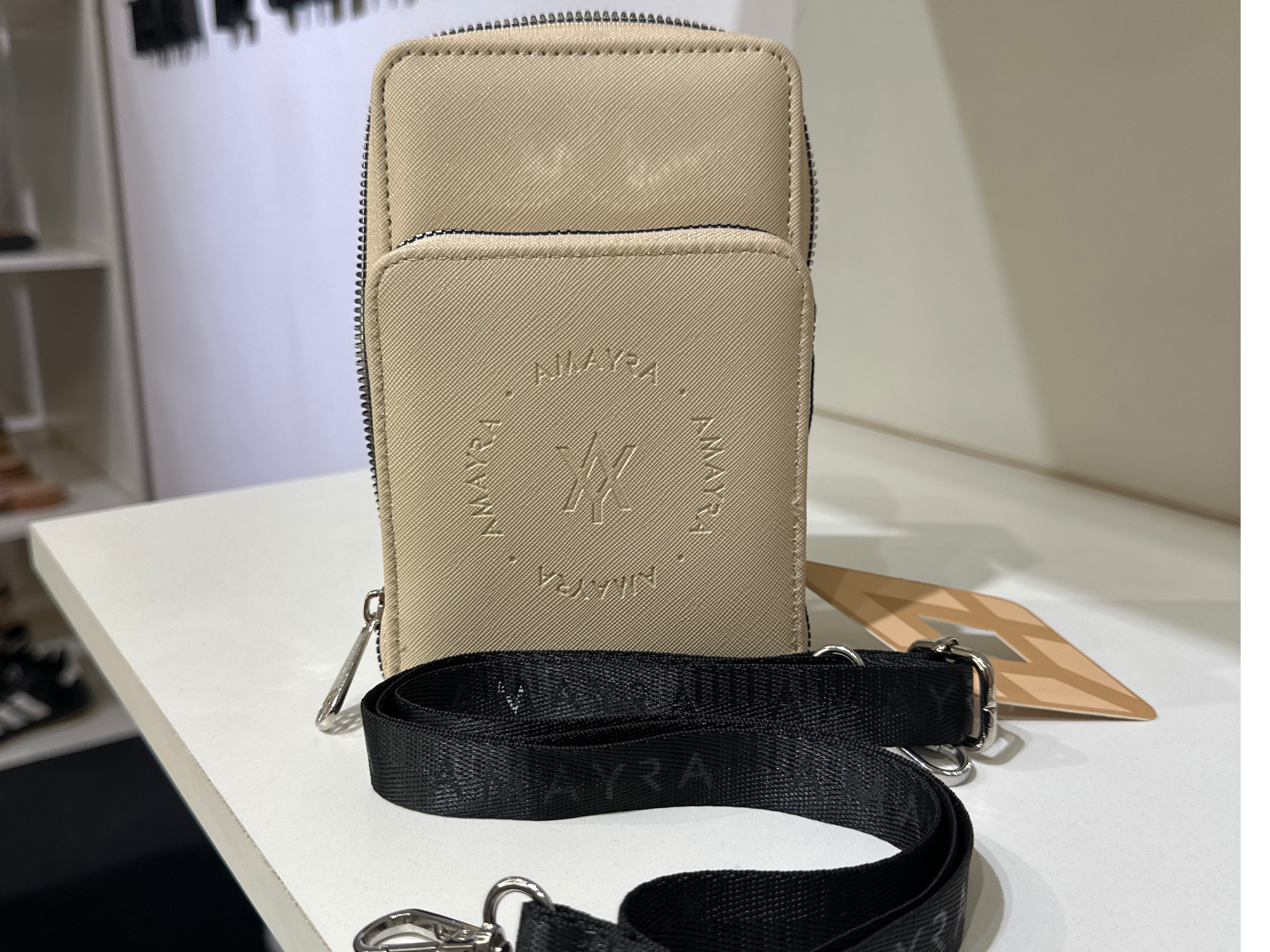 Portacelu Compartir Última unidad Portacelu doble cierre, correa desmontable y regulable. Beige$22.500 Observaciones 0 / 150