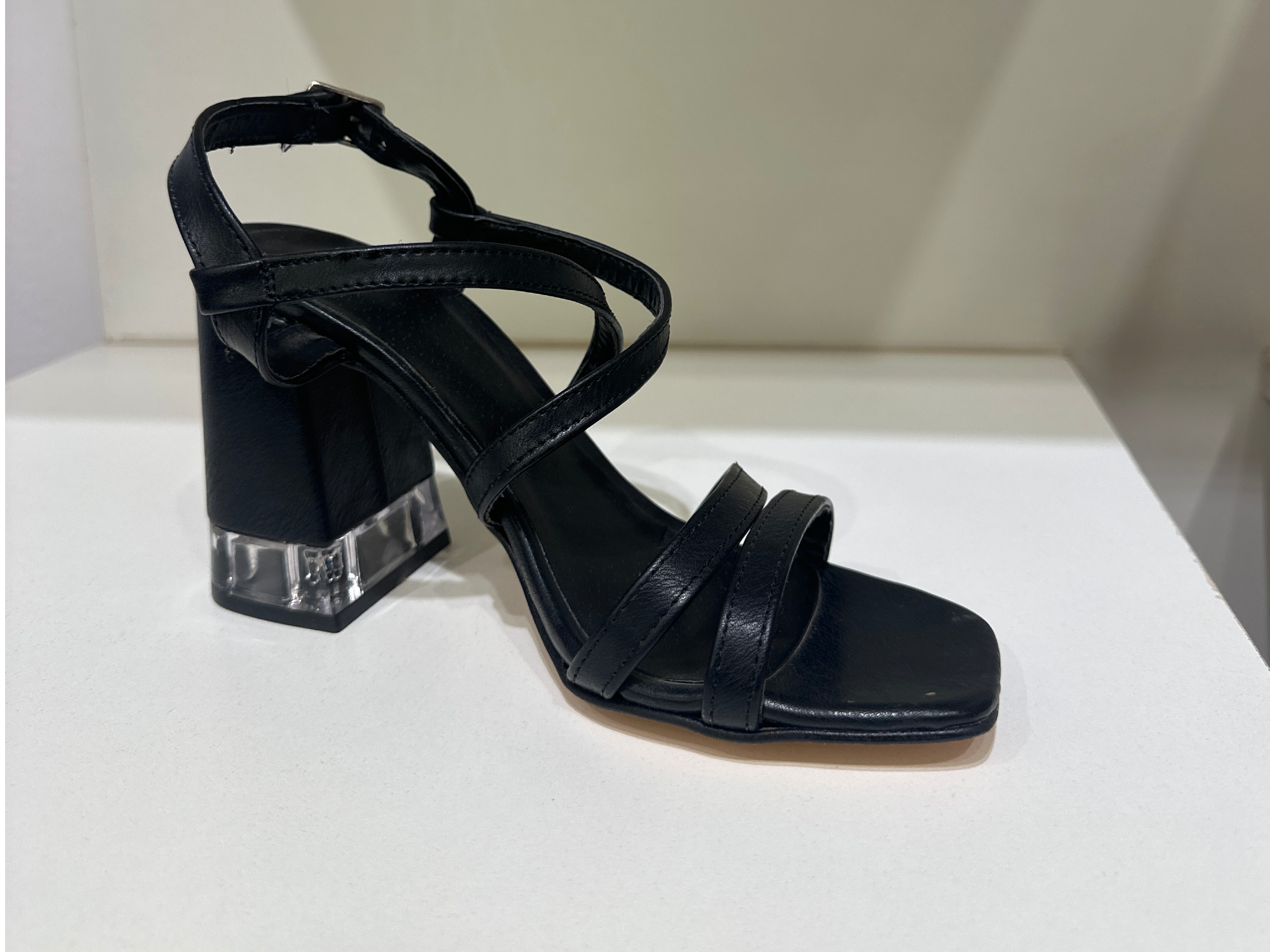 Artículo Ginebra Compartir Sandalia de Fiesta negro, detalle del taco en cristal Disponible en talle 36$52.500 Observaciones 0 / 150
