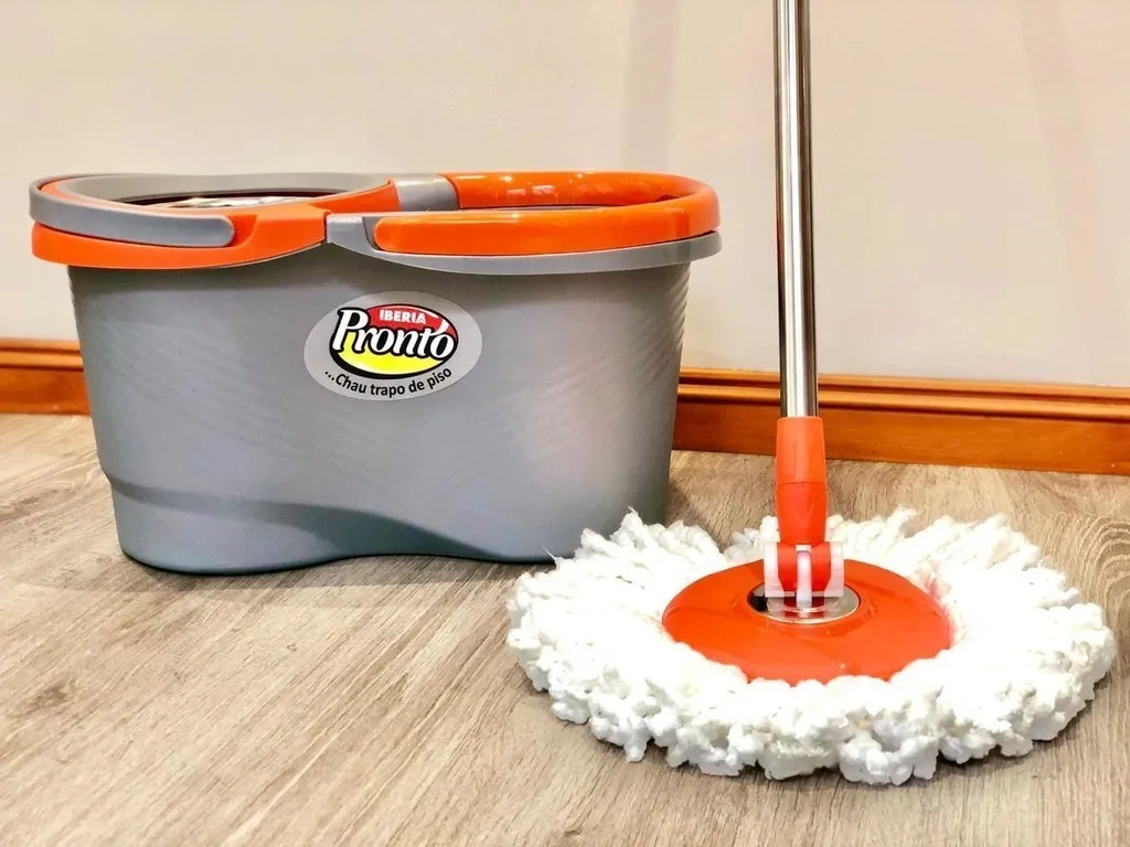Ventajas: Contiene un cabo de acero inoxidable resistente. Balde con boca ancha para mejor entrada y salida de la mopa. Sistema de enjuague y escurrido por centrifugado suave y silencioso. Tambor extraíble de acero inoxidable para mejorar la limpieza del balde. Y una exclusiva traba en el cabo fácil y práctica para activar el sistema de escurrido y enjuague por centrifugado.
