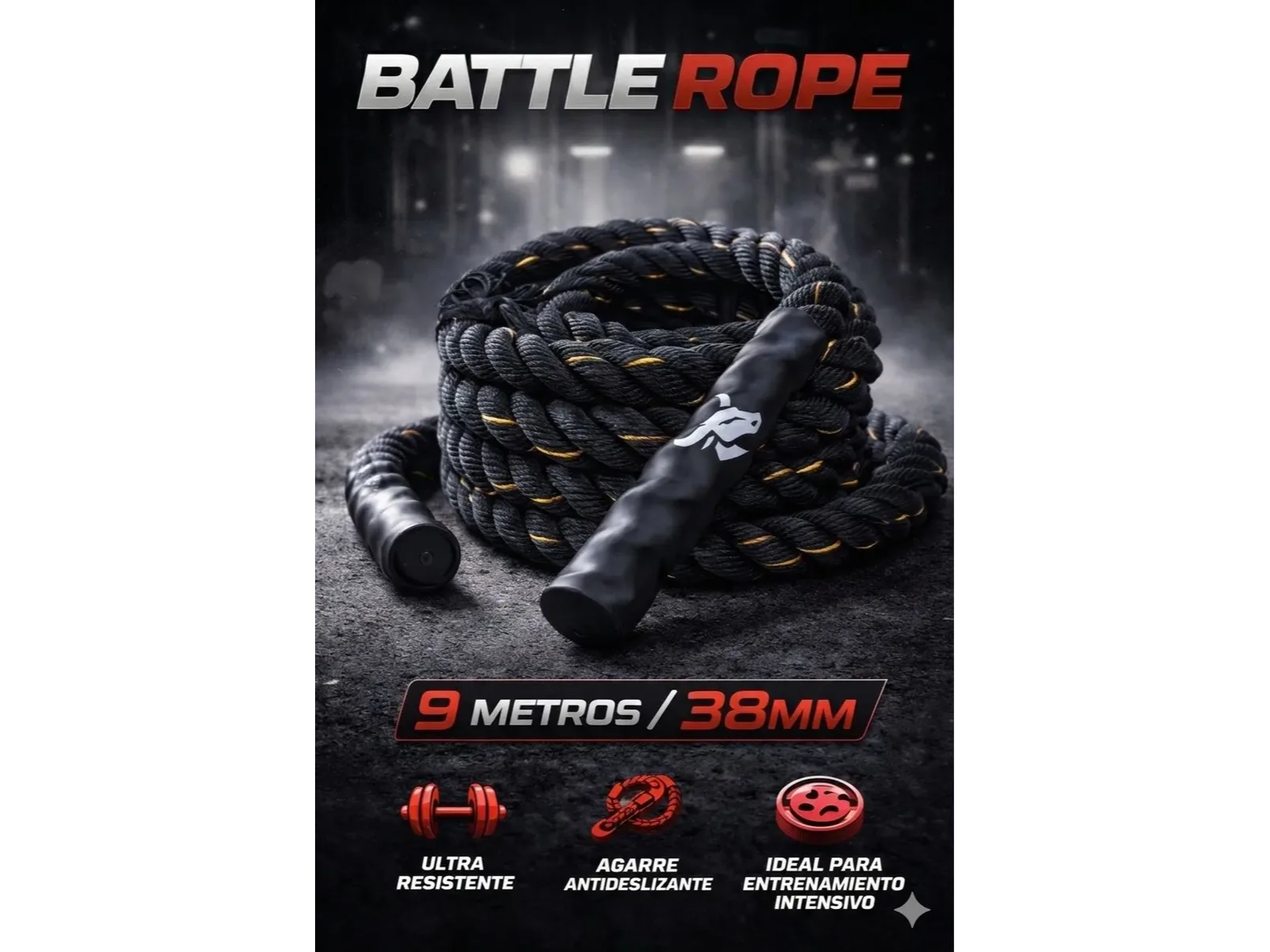 La soga battle rope de Animal Force es la herramienta ideal para quienes buscan llevar su entrenamiento al siguiente nivel. Con un diámetro de 38 mm y una longitud de 9 metros, esta soga pesada está diseñada para ofrecer resistencia y durabilidad en cada sesión de ejercicio. Su material de polietileno garantiza una larga vida útil, incluso en los entrenamientos más intensos.