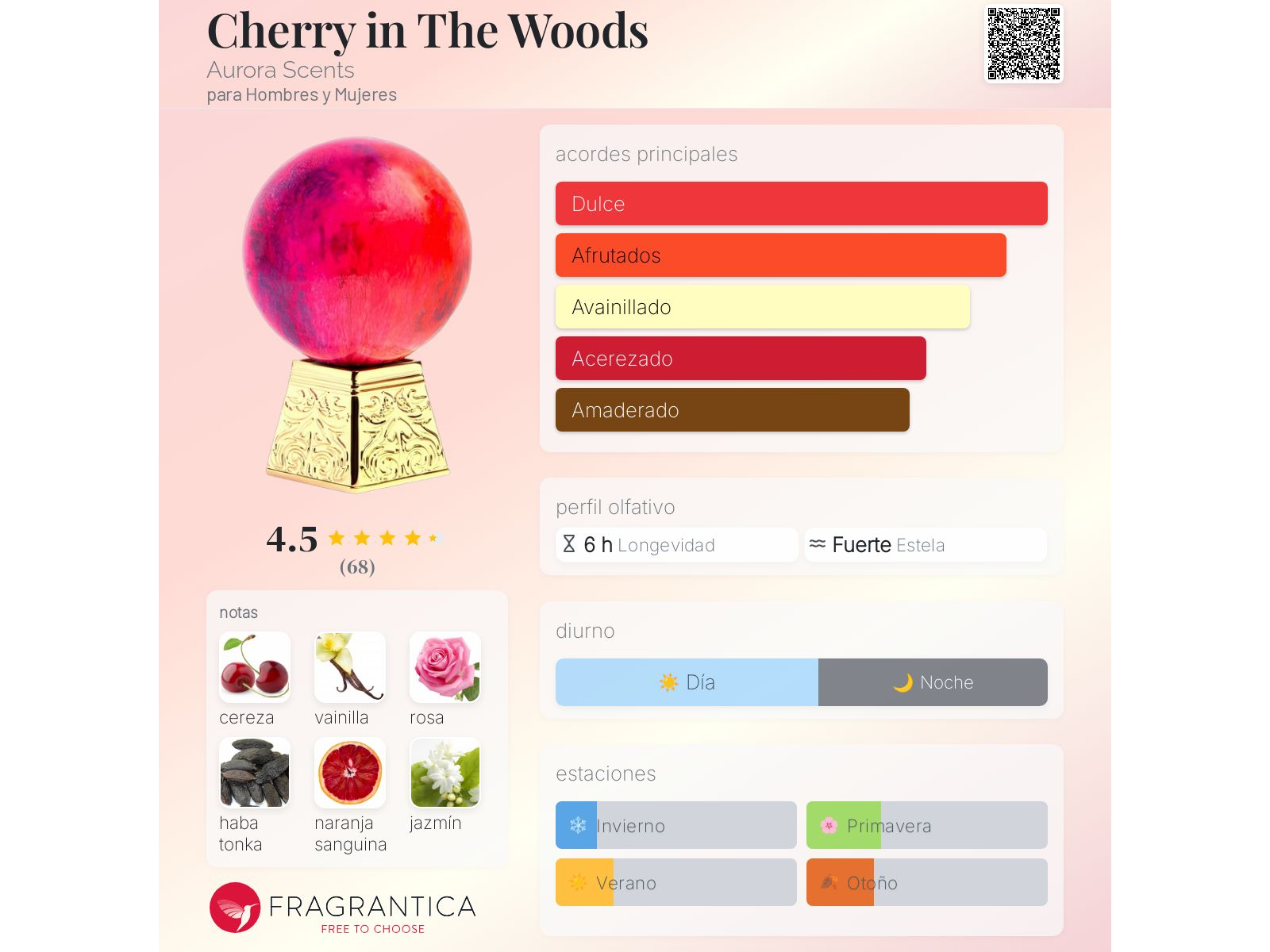 Cherry in The Woods 100ml Aurora Scents Compartir por WhatsApp Copiar enlace $3.390 Observaciones 0 / 150
