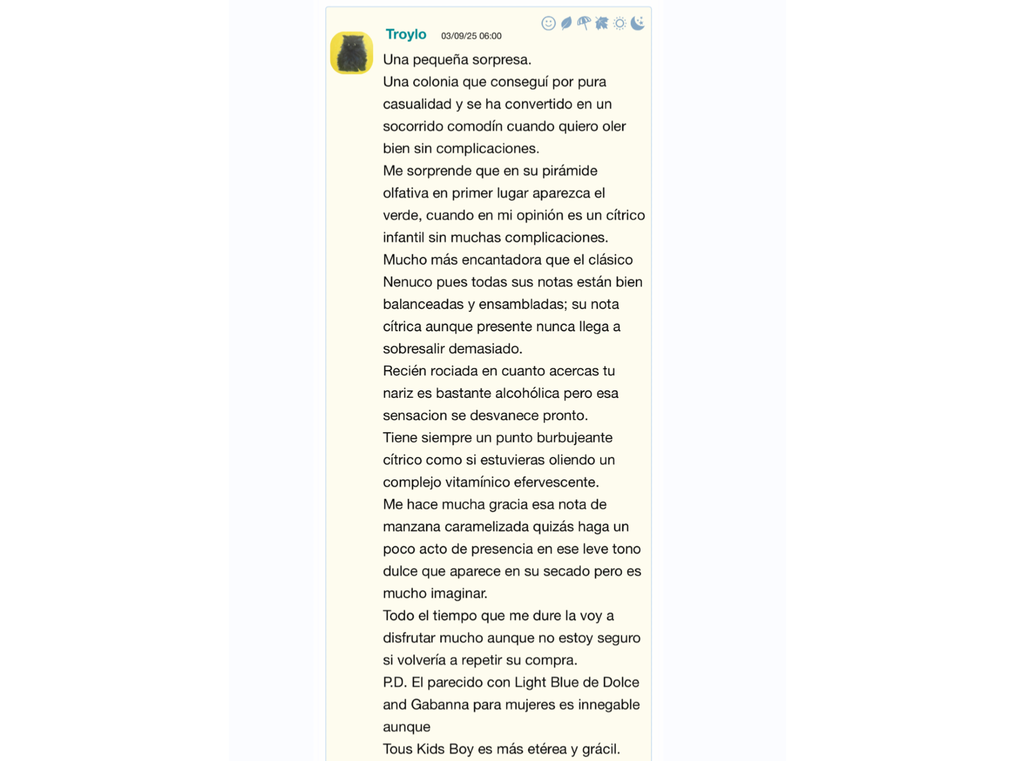 Tous Kids Boy de Tous es una fragancia de la familia olfativa Aromática Frutal para Hombres. Tous Kids Boy se lanzó en 2012. Tous Kids Boy fue creada por Domitille Michalon Bertier y Juliette Karagueuzoglou. Las Notas de Salida son neroli, trébol blanco y mandarina; las Notas de Corazón son notas acuáticas, hierba y manzana acaramelada; las Notas de Fondo son regaliz y almizcle.