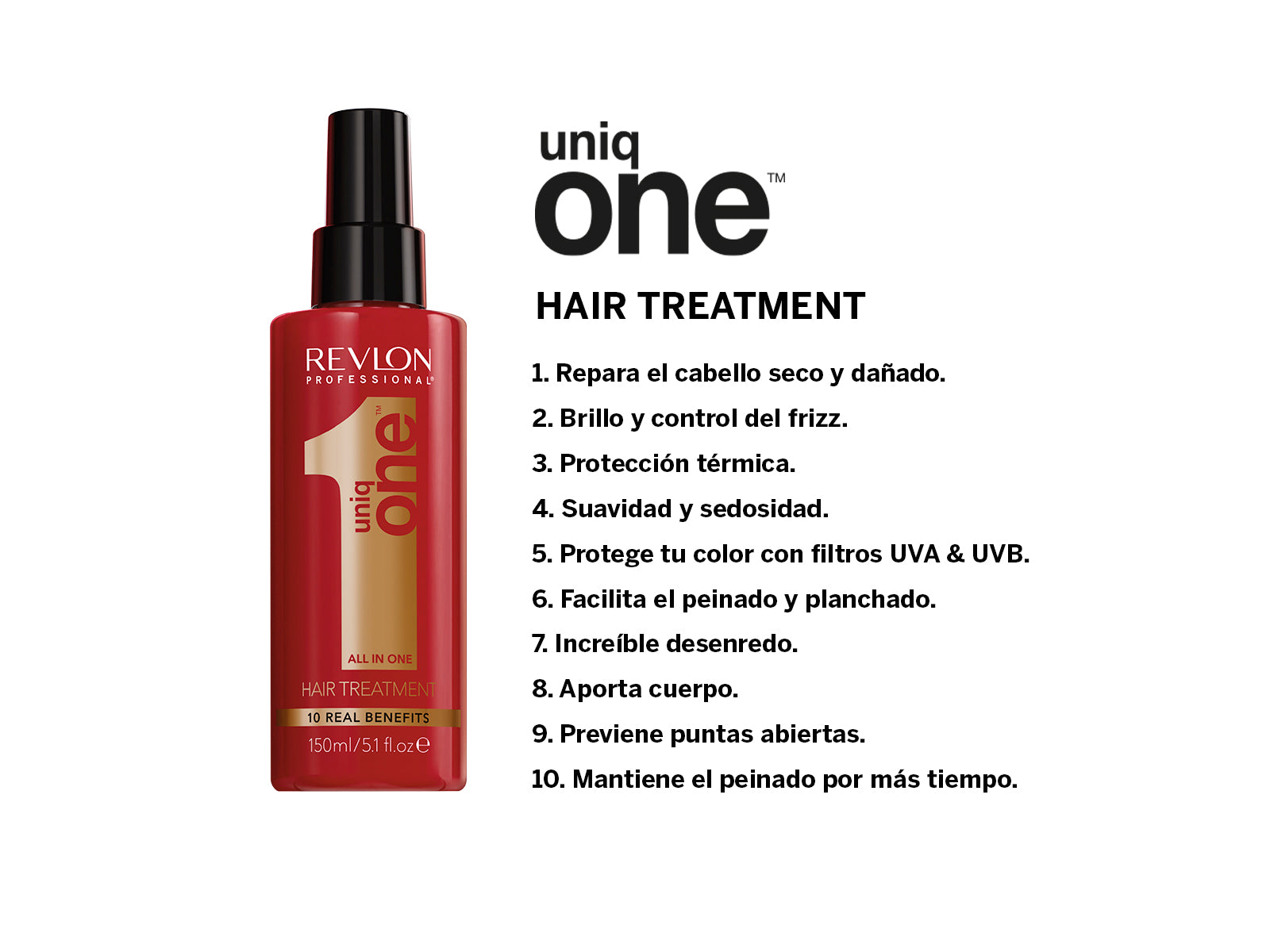 Este tratamiento capilar Revlon Uniq One es una solución revolucionaria que ofrece diez beneficios reales para el cabello, convirtiéndolo en el producto estrella que no puede faltar en tu rutina de cuidado personal. Con su diseño elegante y vibrante en rojo, esta botella no solo embellece tu espacio sino que también promete una melena más saludable, brillante y hermosa.