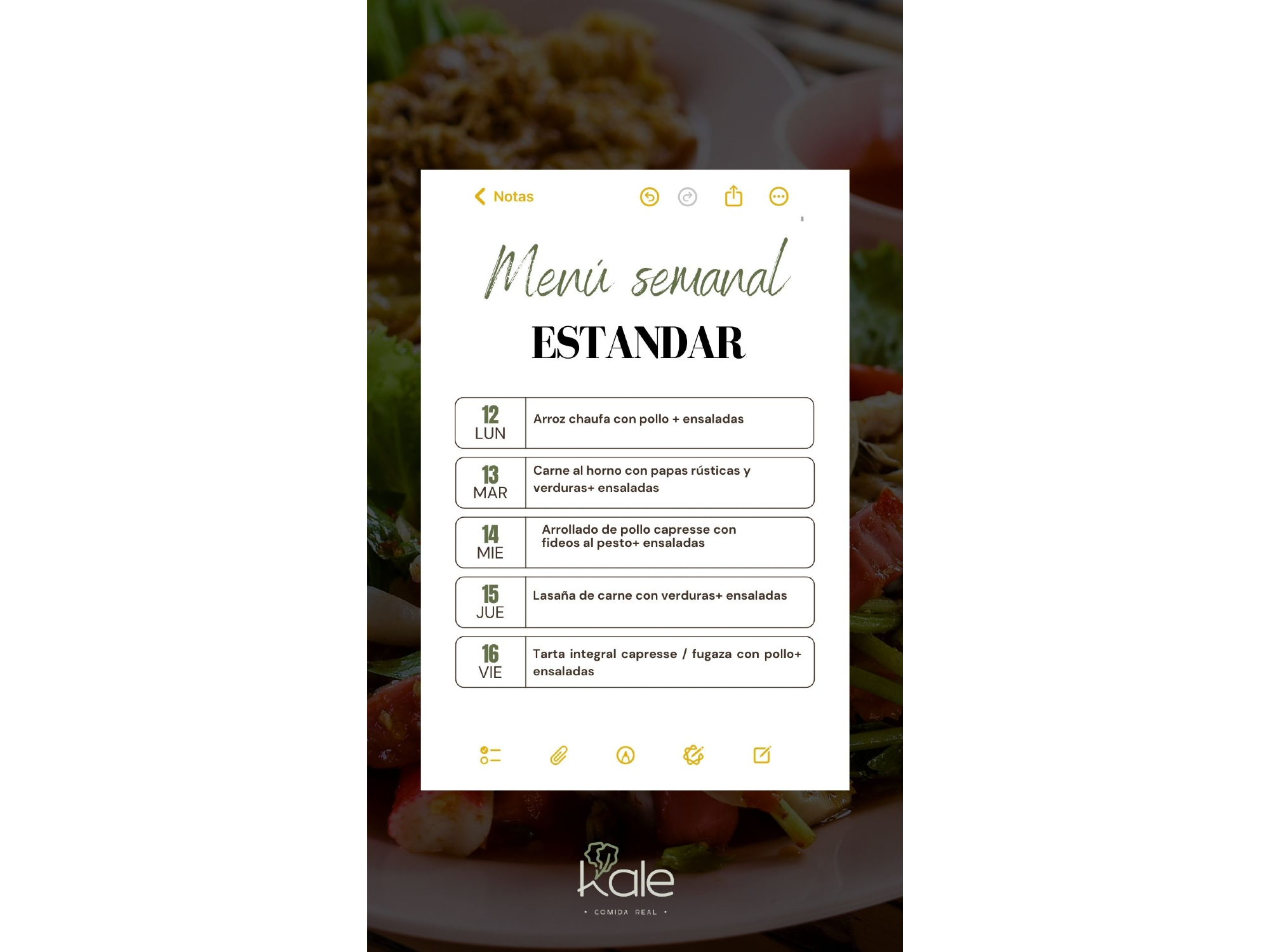 Vianda EstándarDesliza la siguiente imagen para conocer el menú de esta semana👉 Presentaciones Seleccioná una opción.tamaño pequeño (300g) Menú completo en hidratos, proteinas y con ensalada incluida. en caso de haber algun alimento que no le guste o no tolere especificar, y lo tendremos en cuenta. $8.500tamaño mediano (500g) Menú completo en hidratos, proteinas y con ensalada incluida. en caso de haber algun alimento que no le guste o no tolere especificar, y lo tendremos en cuenta. $9.500tamaño grande (800g) Menú completo en hidratos, proteinas y con ensalada incluida. en caso de haber algun alimento que no le guste o no tolere especificar, y lo tendremos en cuenta. $12.500 Complementos para tu pedido Agregá items adicionales a tu pedido. Vianda hiper proteica Seleccioná las opciones que quieras.Opción hiper proteíca (omnívoro) 60 gr de proteina aprox (150 extras de carne o pollo extras del menú del día) + un huevo duro $1.800 Observaciones 0 / 150