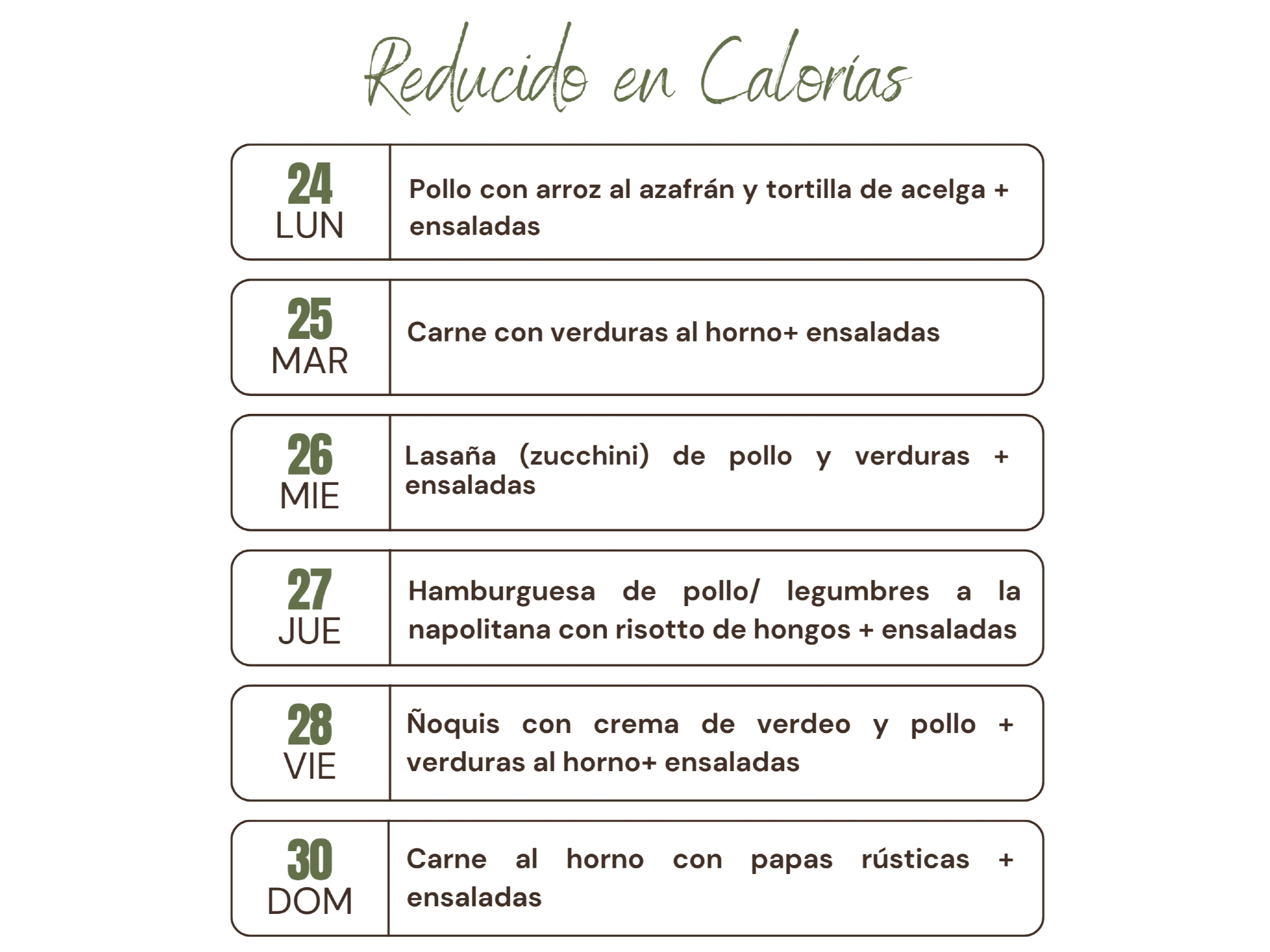 Vianda reducida en caloríasDesliza la siguiente imagen para conocer el menú de esta semana👉 Presentaciones Seleccioná una opción.Tamaño pequeño (300g) Ideal para el descenso de grasa. Priorizamos proteinas y alto en fibras, reducimos los hidratos (integrales) . En caso de haber algun alimento que no le guste o no tolere especificar, y lo tendremos en cuenta. $8.000Tamaño mediano (500gr) Ideal para el descenso de grasa. Priorizamos proteinas y alto en fibras, reducimos los hidratos (integrales) . En caso de haber algun alimento que no le guste o no tolere especificar, y lo tendremos en cuenta. $9.000tamaño grande (800g)$11.000 Complementos para tu pedido Agregá items adicionales a tu pedido. Vianda hiper proteica Seleccioná las opciones que quieras.Opción hiper proteíca (omnívoro) 60 gr de proteina aprox (150 extras de carne o pollo extras del menú del día) + un huevo duro $1.500 Observaciones 0 / 150