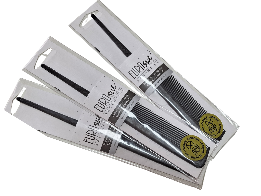 Peine púa de carbono Eurostil (20,5cm) Compartir por WhatsApp Copiar enlace Calidad profesional Características: * Material Rígido de carbono *Resistente al calor *Resistente a los líquidos de peluquería *Material antiestático$2.800 Observaciones 0 / 150