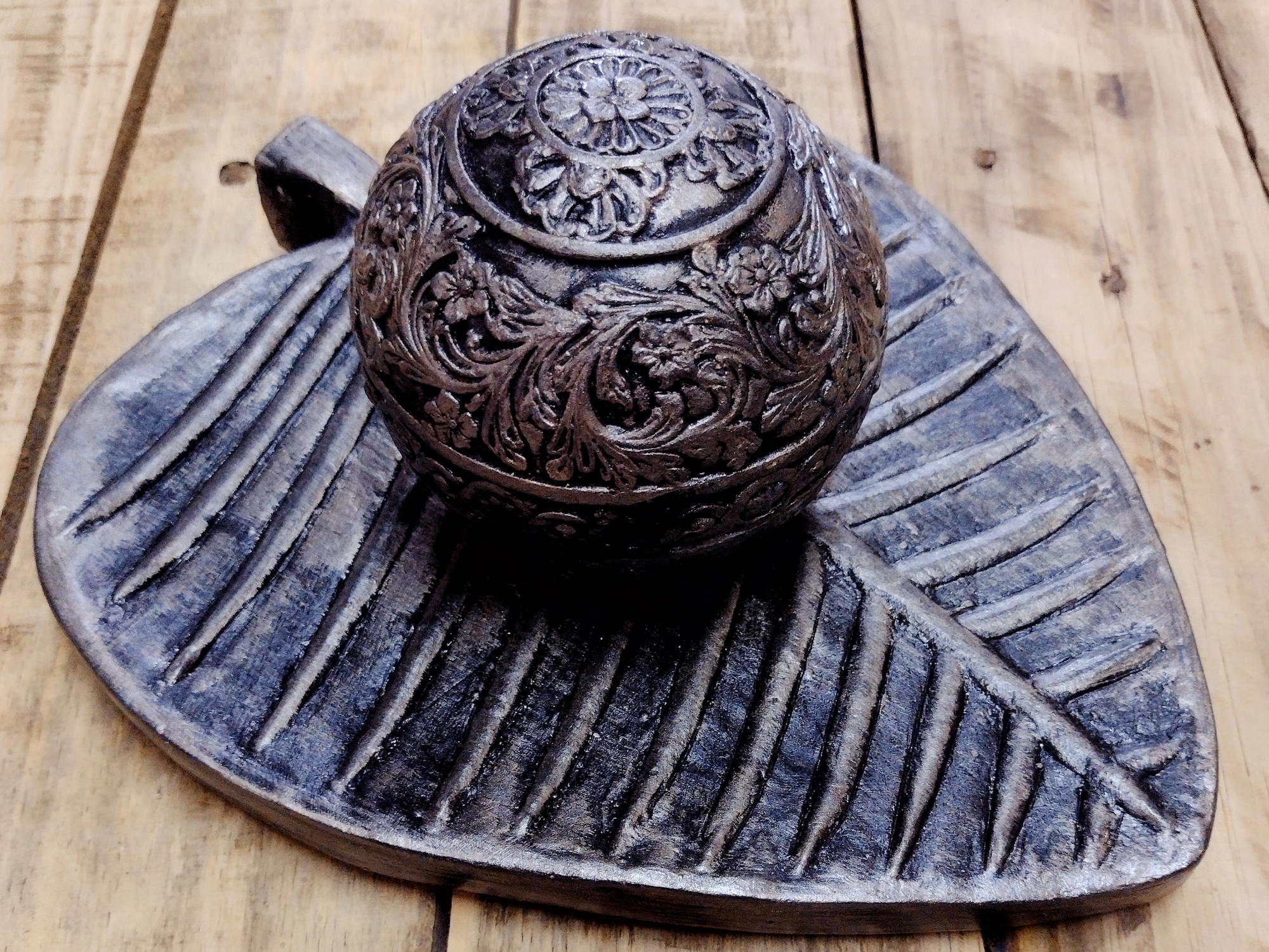 ARTESANAL Centro de Mesa HOJA Mediana con Esferas