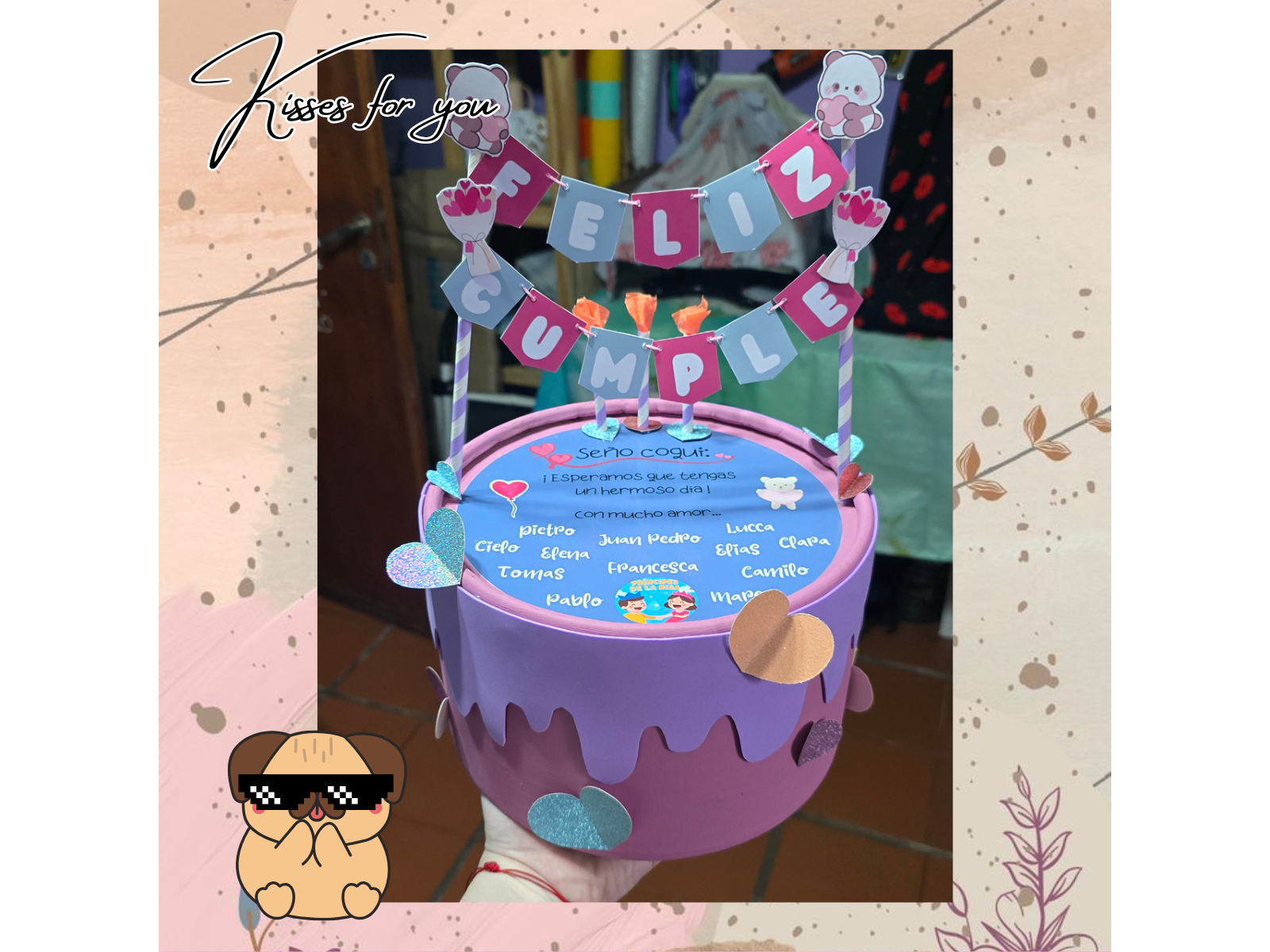 Torta box personalizada Compartir por WhatsApp Copiar enlace Torta box personalizada ideal para llevar al jardin , el cole o donde vos quieras! Sus medidas son de 14 cm de alto por 22 de diámetro$35.000 Observaciones 0 / 150